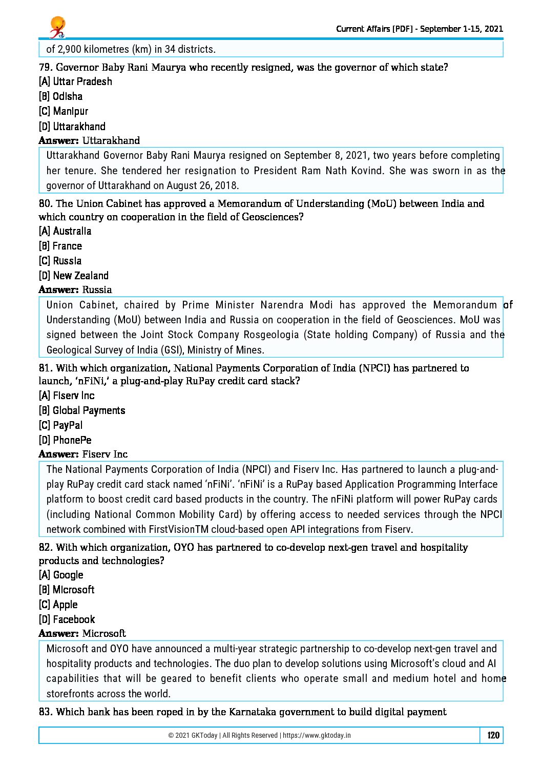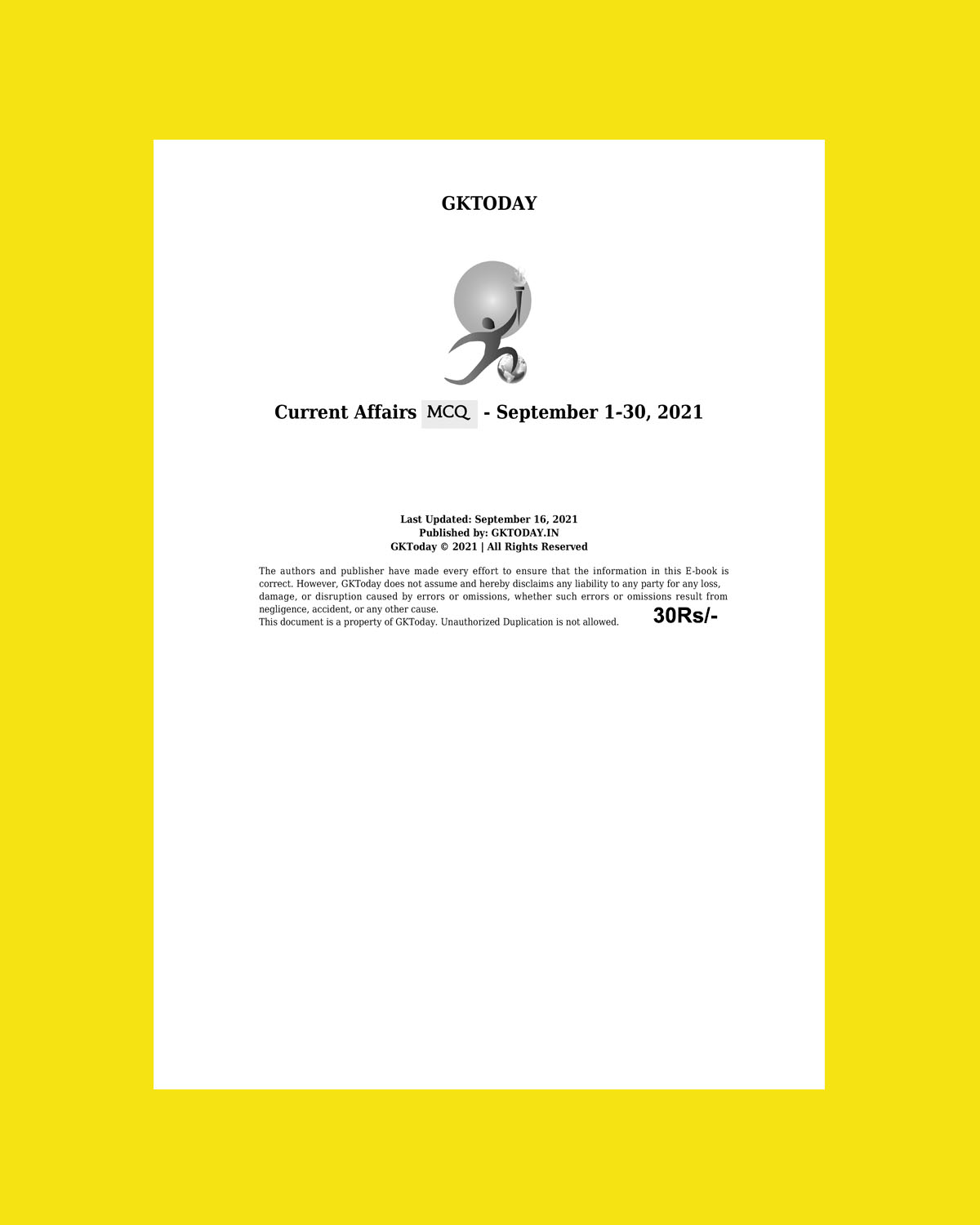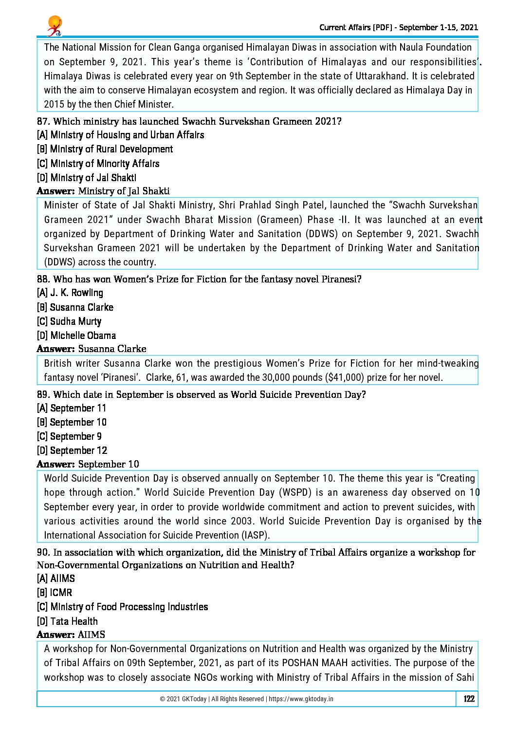 / GKTODAY CURRENT AFFAIRS QUIZ SEPTEMBER 2021 (BLACK & WHITE)