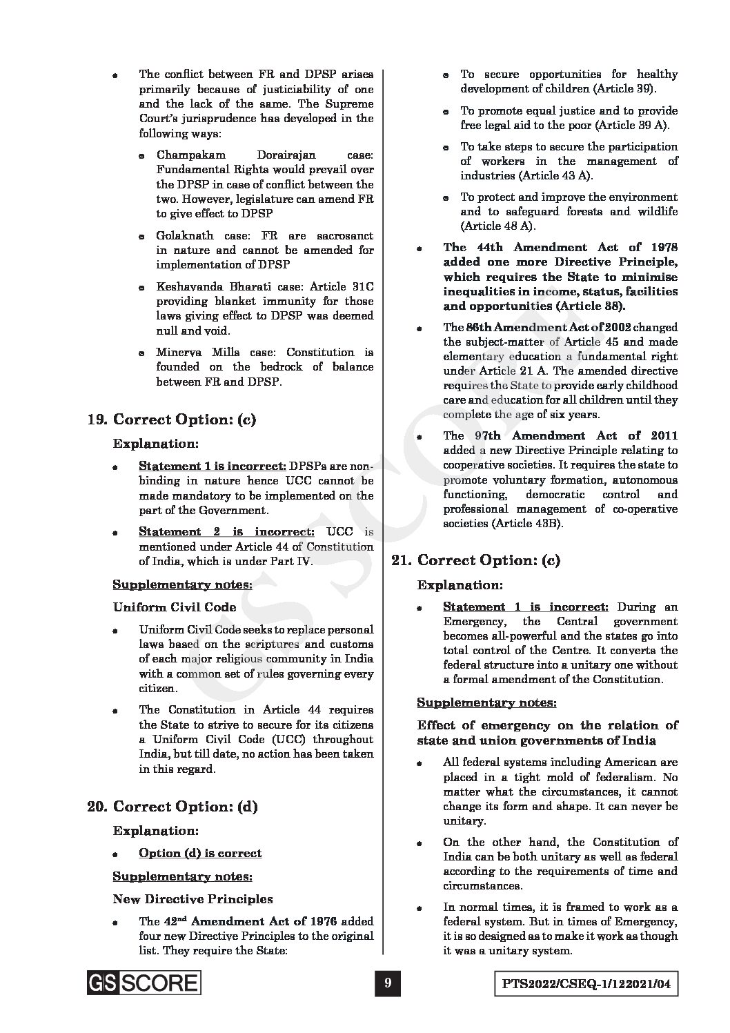 / GS SCORE 2022 PRELIMS QUALIFIER REVISION DAILY TEST TEST-04 POLITY-REVISION TEST- WEEK-1 (BLACK & WHITE)
