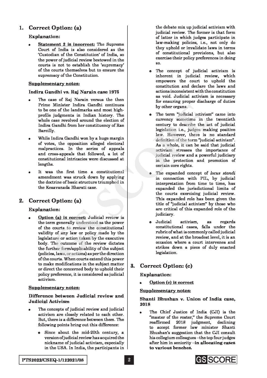 / GS SCORE 2022 PRELIMS QUALIFIER REVISION DAILY TEST TEST-08 POLITY-REVISION TEST- WEEK -2 (BLACK & WHITE)