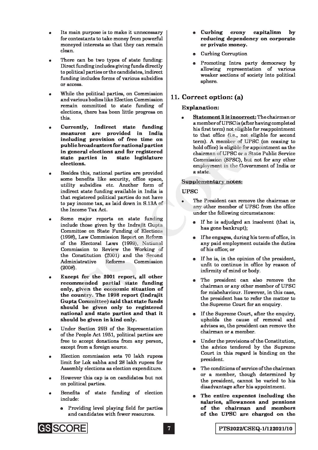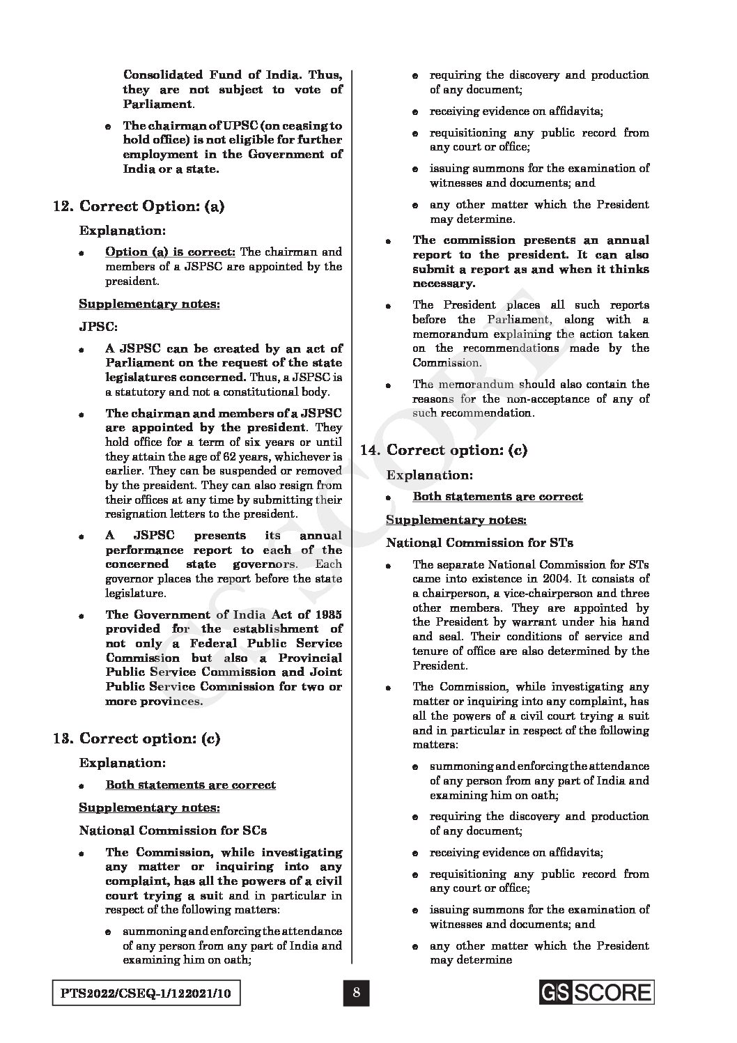 GS SCORE 2022 PRELIMS QUALIFIER REVISION DAILY TEST TEST-10 POLITY- CONSTITUTIONAL BODIES , NON-CONSTITUTIONAL BODIES, POLITICAL DYNAMICS (BLACK & WHITE)