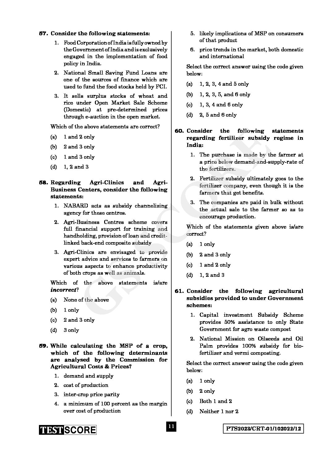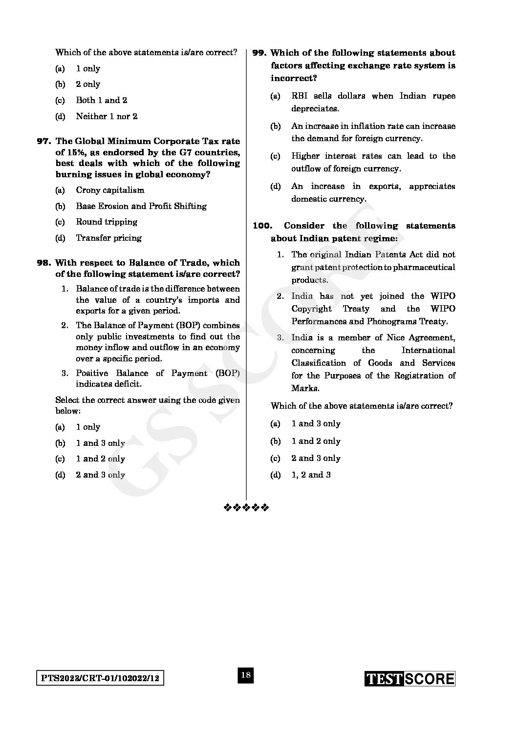 GS SCORE 2023 CRT PRELIMS TEST SERIES TEST-12 WITH SOLUTION FUNDAMENTALS OF ECONOMY-2 (COMPLETE REVISION THROUGH TEST) ENGLISH MEDIUM (BLACK & WHITE)