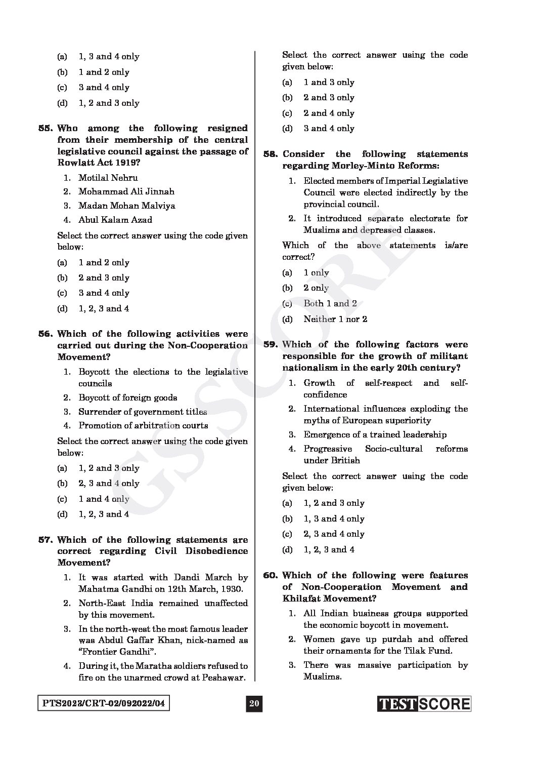 GS SCORE 2023 CRT TEST-04 WITH SOLUTION FUNDAMENTALS OF HISTORY-2 (COMPLETE REVISION THROUGH TEST) ENGLISH MEDIUM (BLACK & WHITE)
