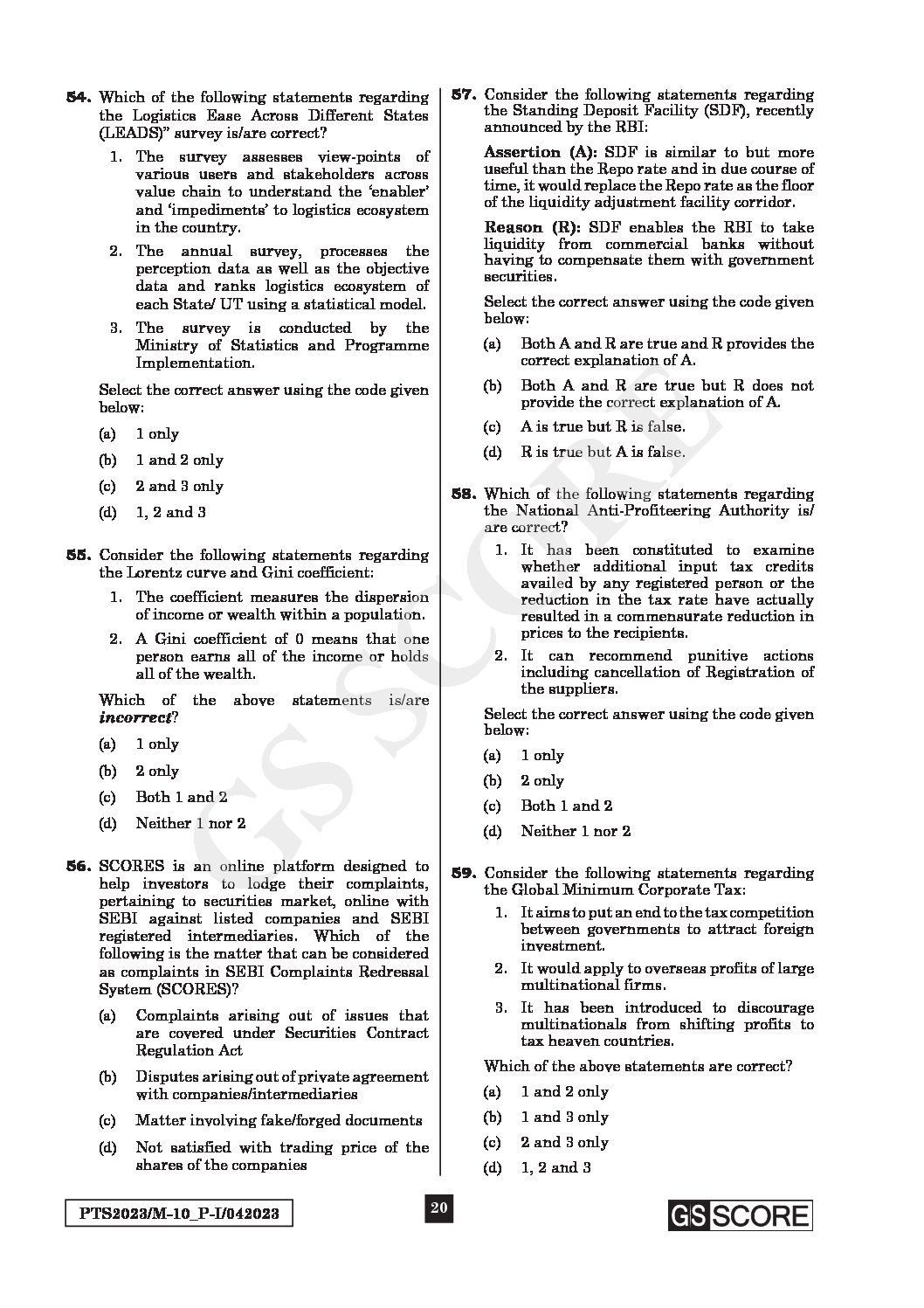 GS SCORE 2023 CRT TEST-31 WITH SOLUTION (MOCK -10 PAPER -1 ) ENGLISH MEDIUM-(BLACK & WHITE) quantity