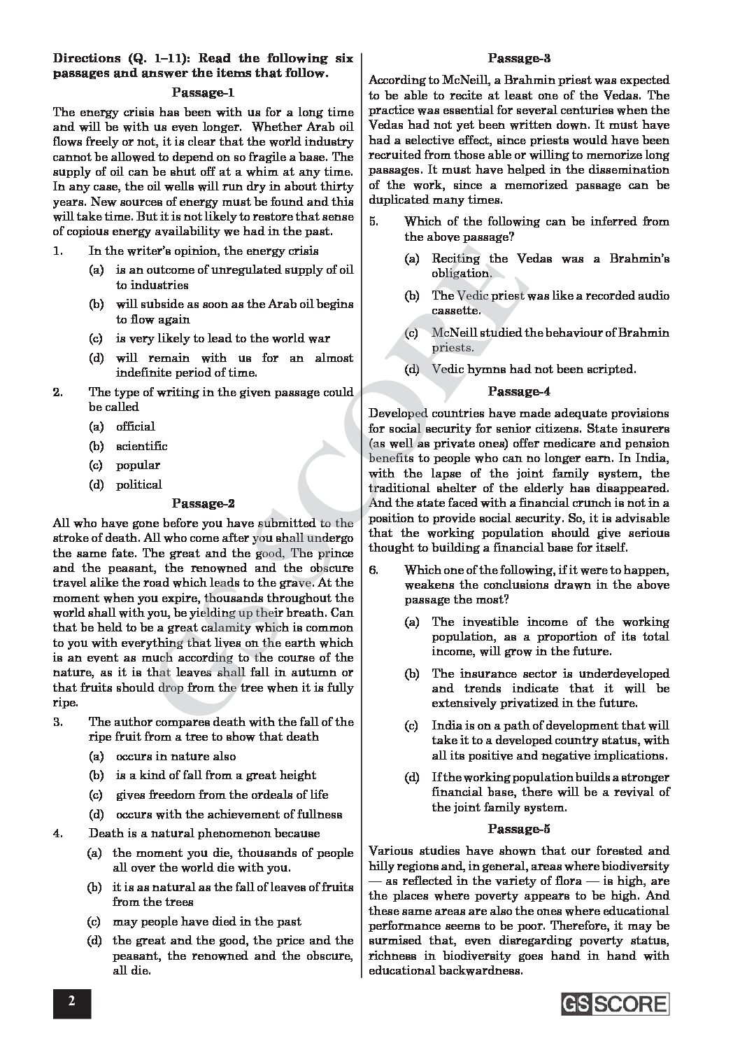 / GS SCORE 2023 FULL MOCK TEST 20 2023 CSAT GS (STUDIES PAPER II)(BLACK & WHITE)