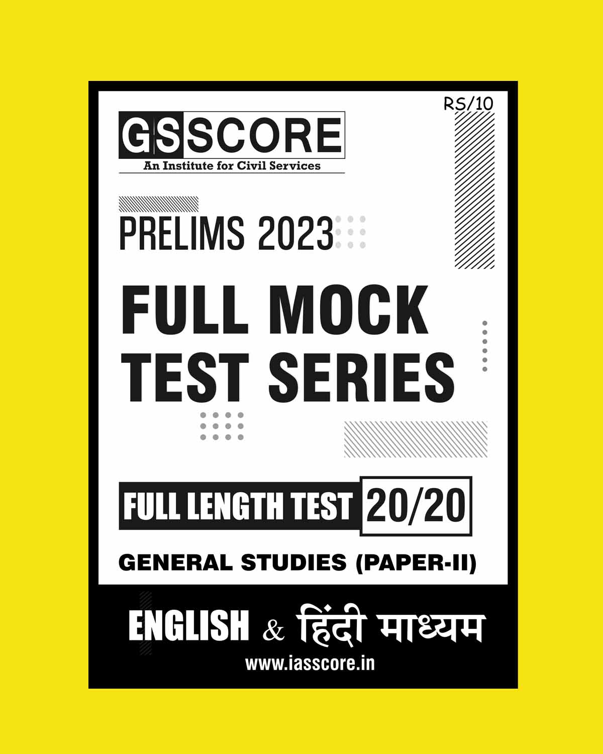 GS SCORE 2023 FULL MOCK TEST 20 2023 CSAT GS (STUDIES PAPER II)(BLACK & WHITE) quantity
