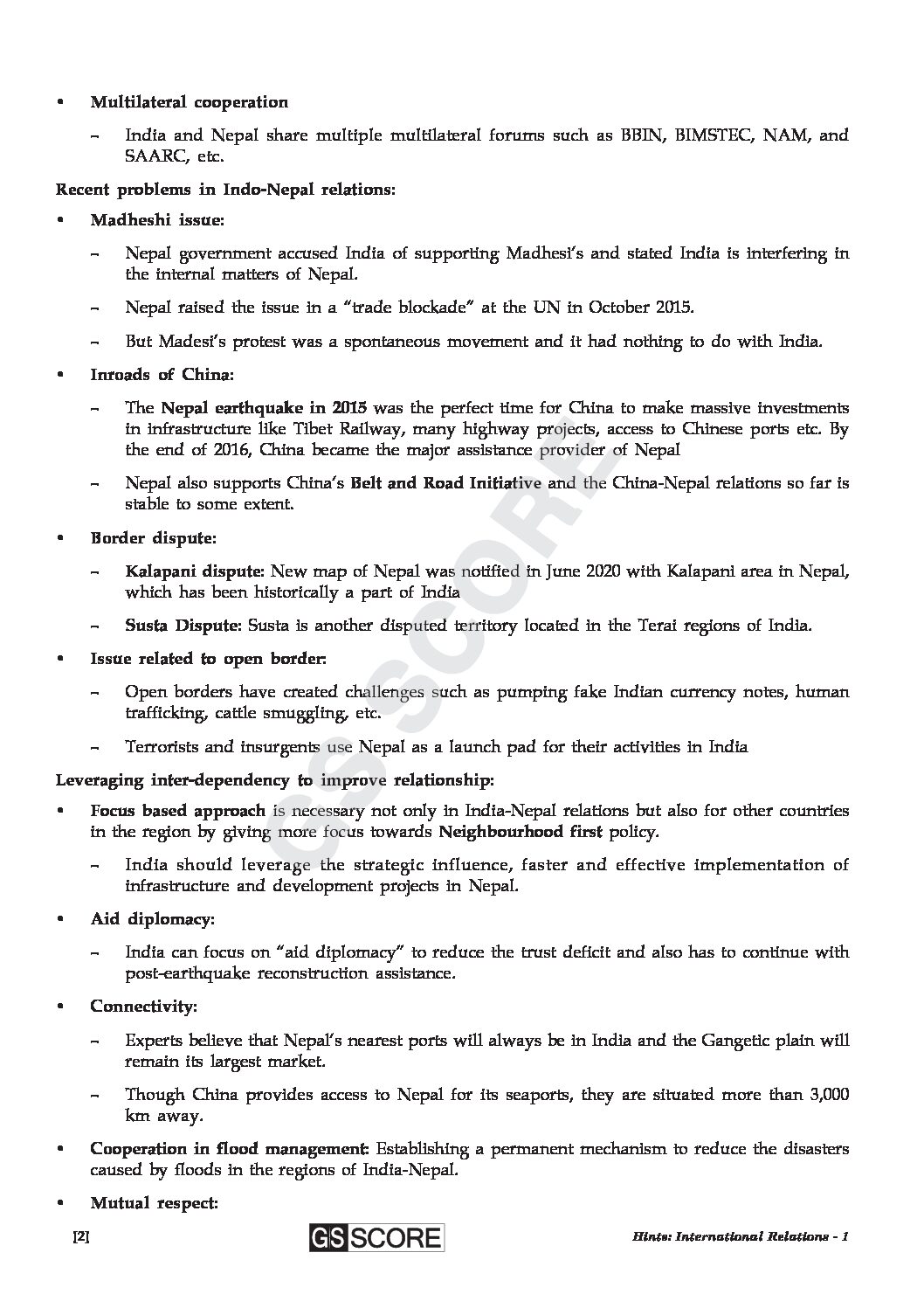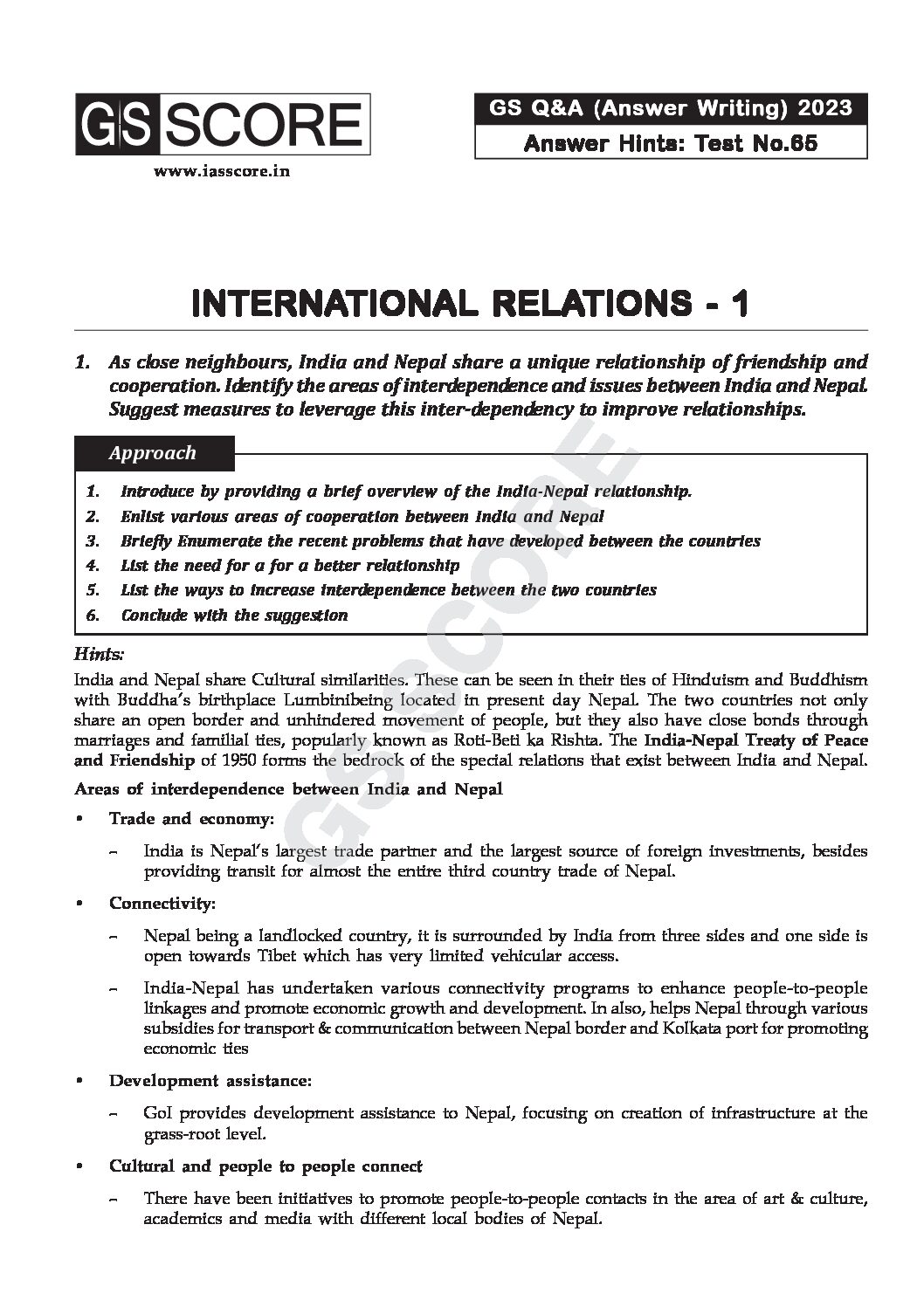 GS SCORE 2023 GS SCORE 2023 TEST-65 TO 68 (INTERNATIONAL RELATIONS) ENGLISH MEDIUM 2023 (BLACK & WHITE)