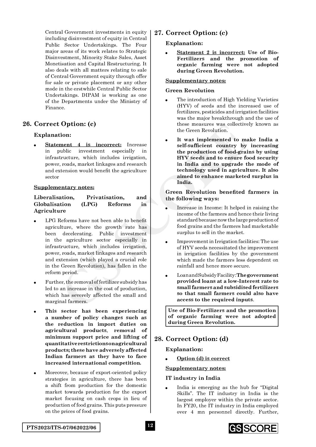 / GS SCORE 2023 INTEGRATED TEST SERIES PRELIMS TEST-6 (ECONOMY-2) (BLACK & WHITE)
