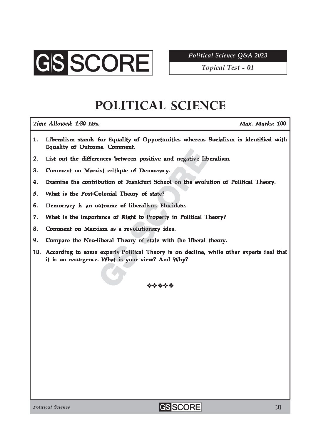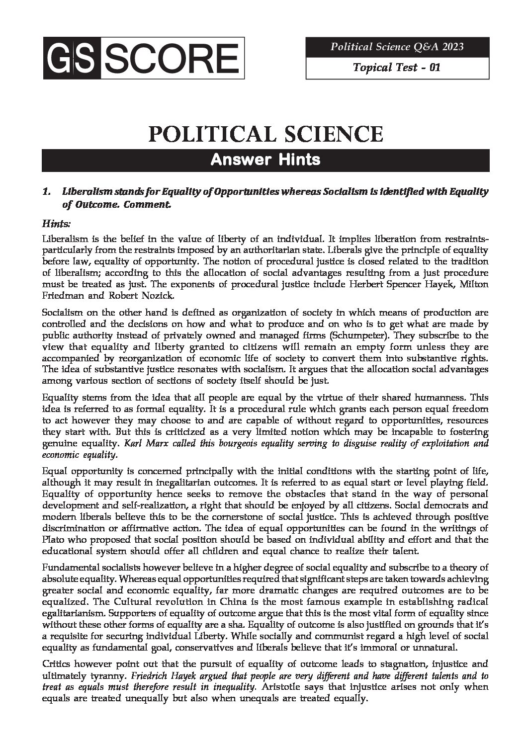 / GS SCORE 2023 POLITICAL SCIENCE TOPICAL TEST-01 TO 18 ENGLISH MEDIUM 2023 Q&A (BLACK & WHITE)