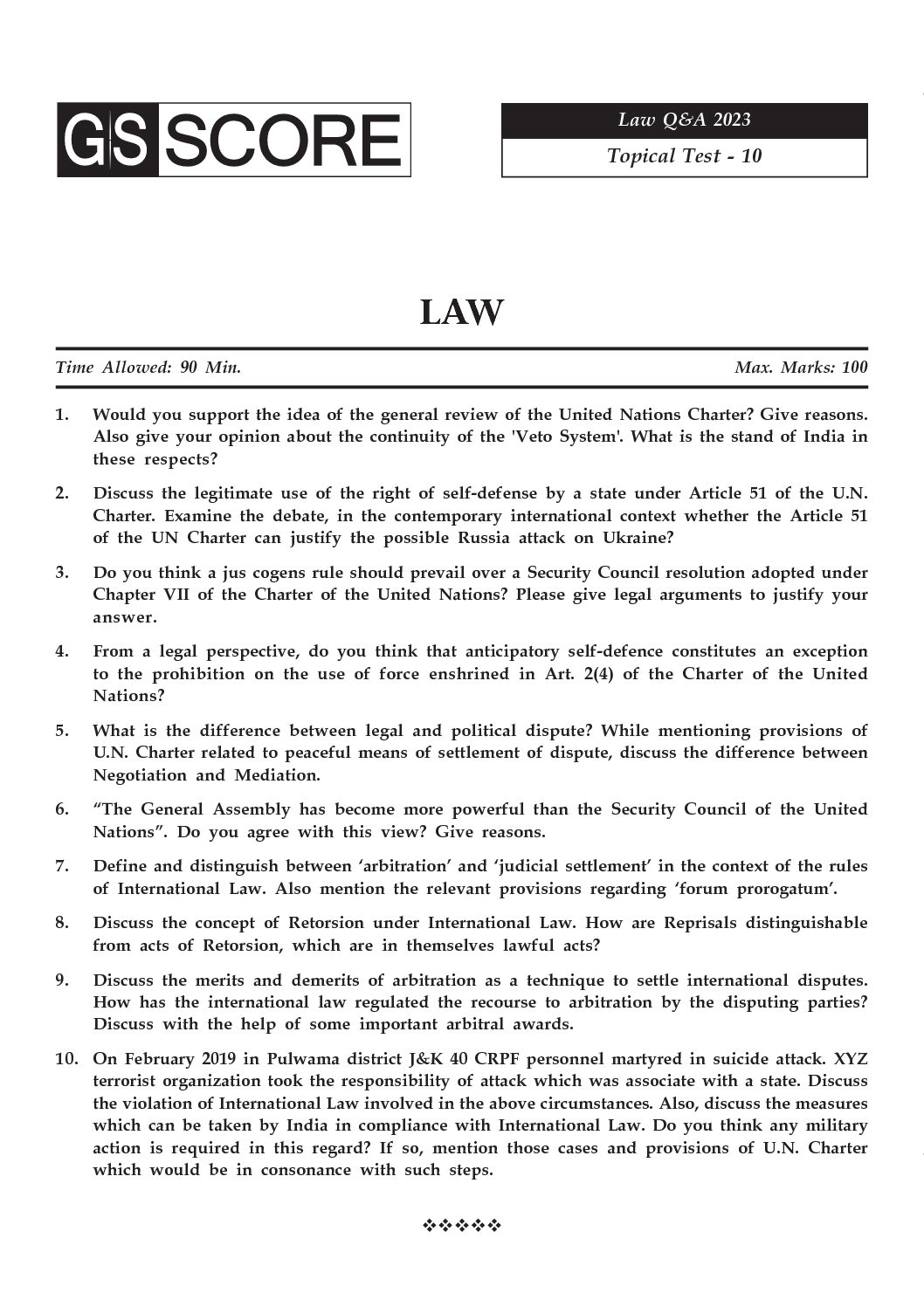 / GS SCORE 2023 TOPICAL TEST-10 TO 18 ENGLISH MEDIUM 2023 (TEST-17 IS MISSING) (BLACK & WHITE)