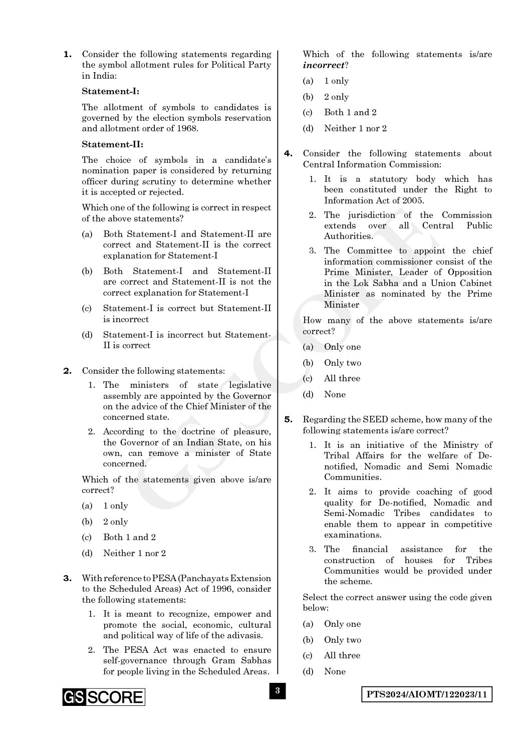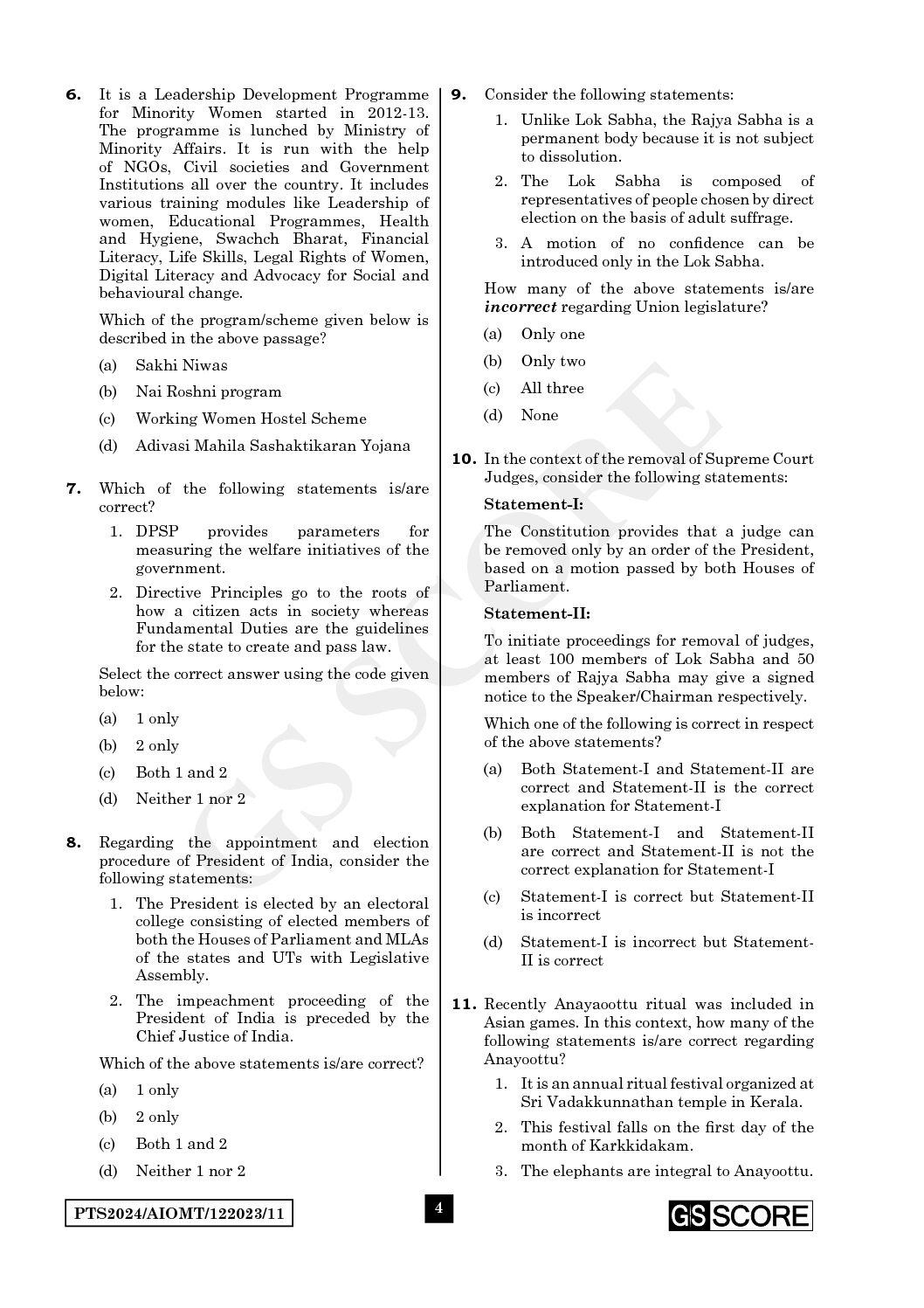 GS SCORE 2024 ALL INDIA MOCK TEST-11 2024 FINAL ENGLISH {BLACK AND WHITE}