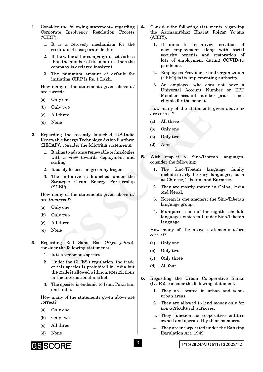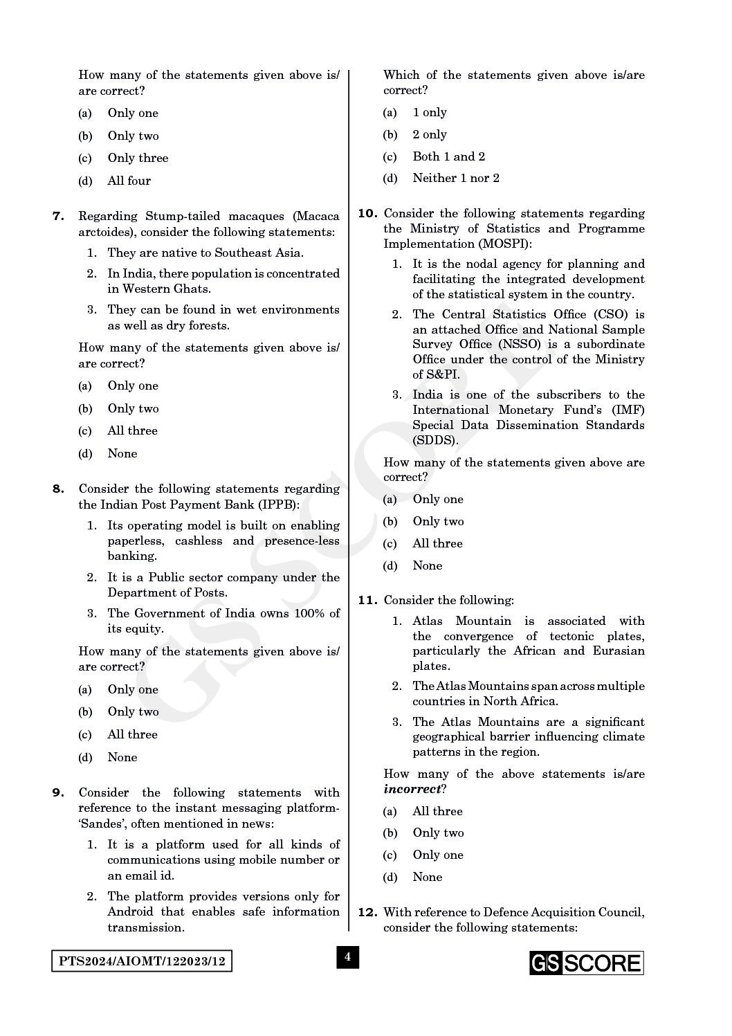 GS SCORE 2024 ALL INDIA MOCK TEST-12 2024 FINAL ENGLISH {BLACK AND WHITE}