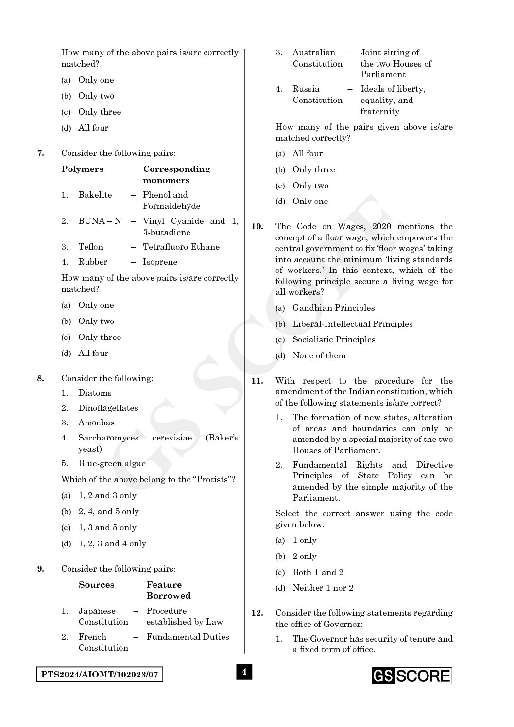 GS SCORE 2024 ALL INDIA MOCK TEST-7 2024 FINAL {ENGLISH} {BLACK AND WHITE}