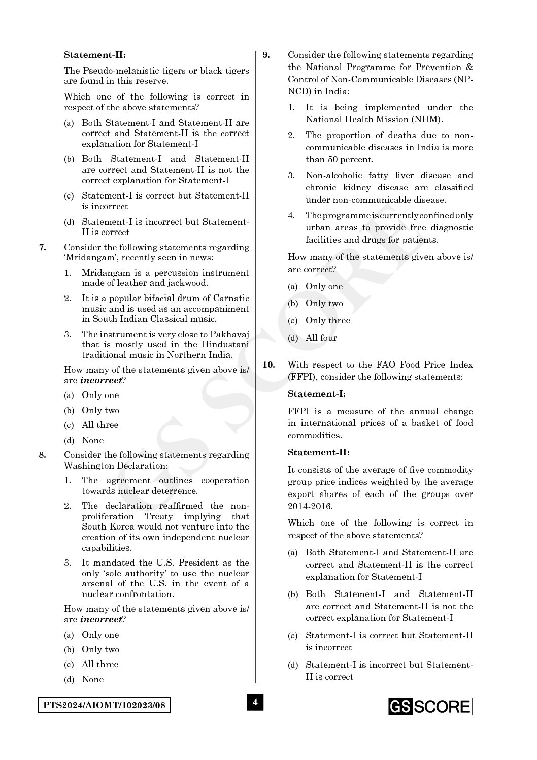 GS SCORE 2024 ALL INDIA MOCK TEST-8 2024 FINAL {ENGLISH} {BLACK AND WHITE}