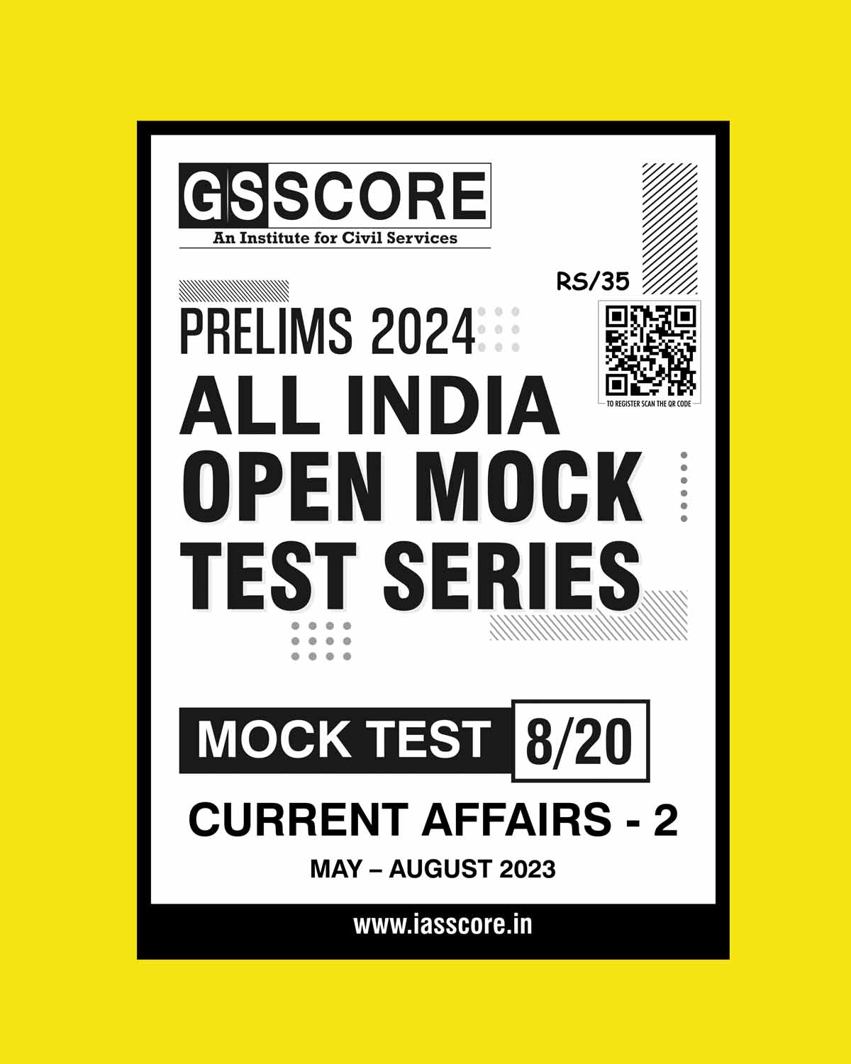 GS SCORE 2024 ALL INDIA MOCK TEST-8 2024 FINAL {ENGLISH} {BLACK AND WHITE} quantity