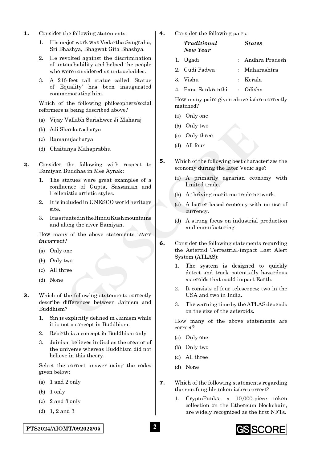 / GS SCORE 2024 ALL INDIA OPEN GS MOCK TEST-5 ENGLISH MEDIUM (BLACK & WHITE)