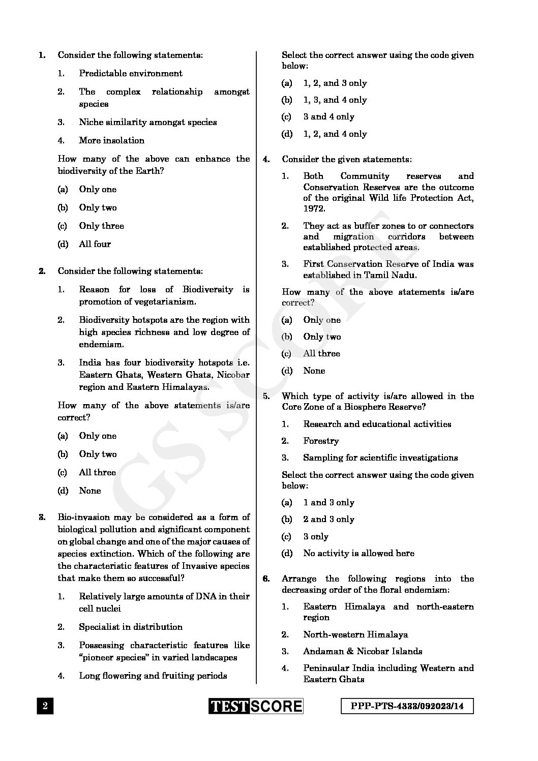 / GS SCORE 2024 PRELIMS TEST-14 (ENVIRONMENT-III) 2024 ENGLISH MEDIUM (BLACK & WHITE)