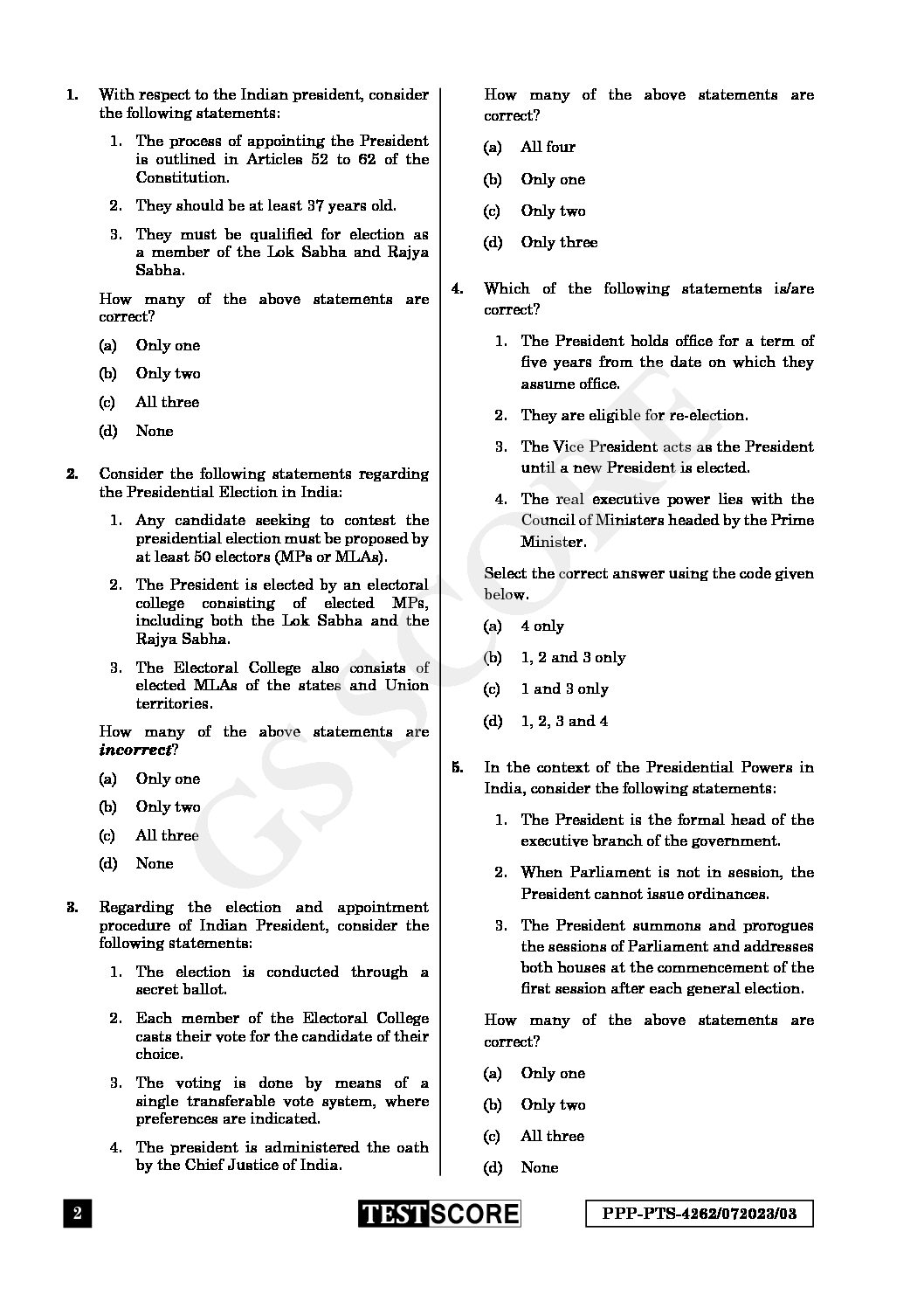 / GS SCORE 2024 PT TEST-03 (POLITY-III) 2024 ENGLISH MEDIUM (BLACK & WHITE)