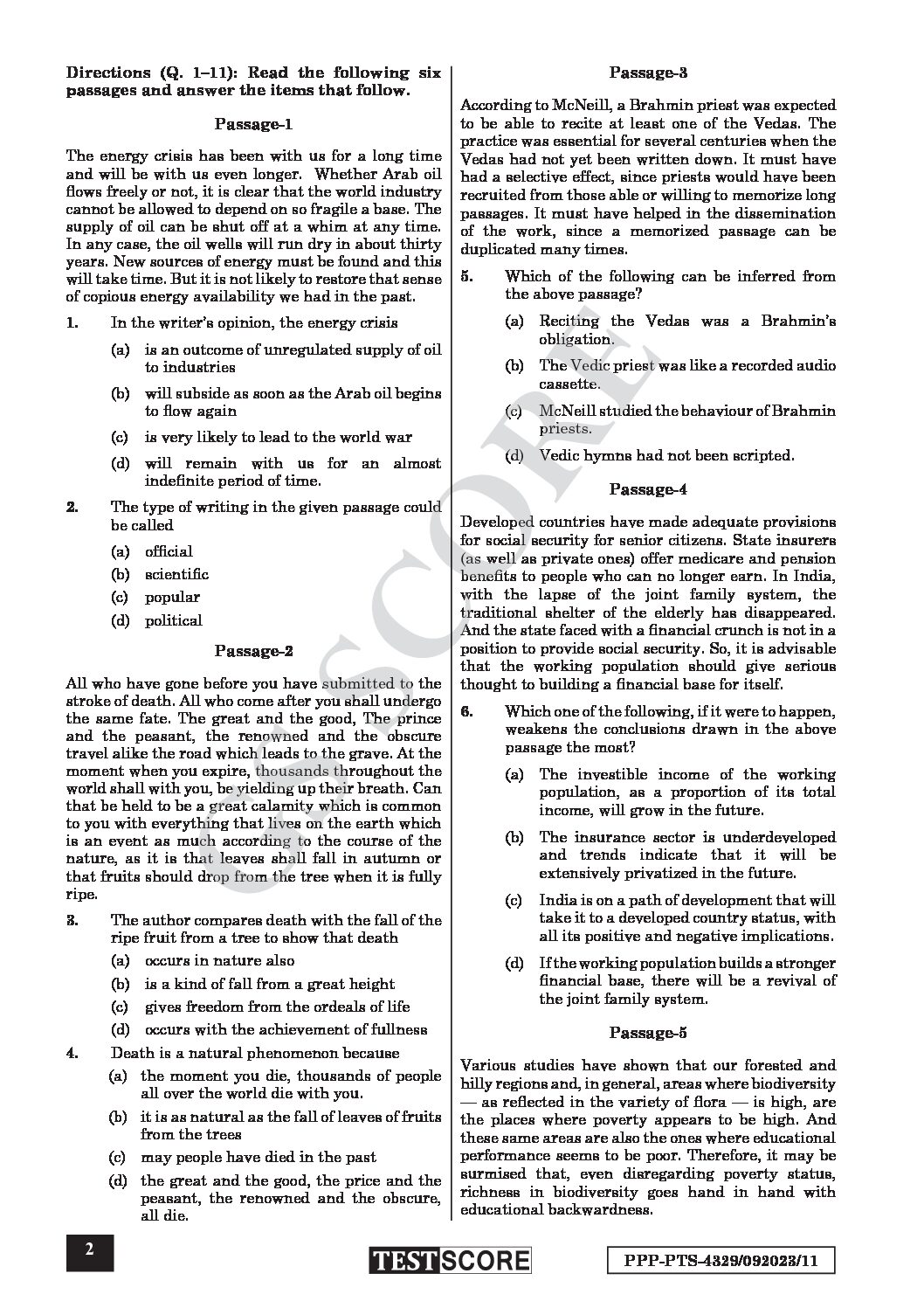 / GS SCORE 2024 PT TEST-11 (CSAT-11 READING COMPREHENSION-I) 2024 ENGLISH MEDIUM (BLACK & WHITE)
