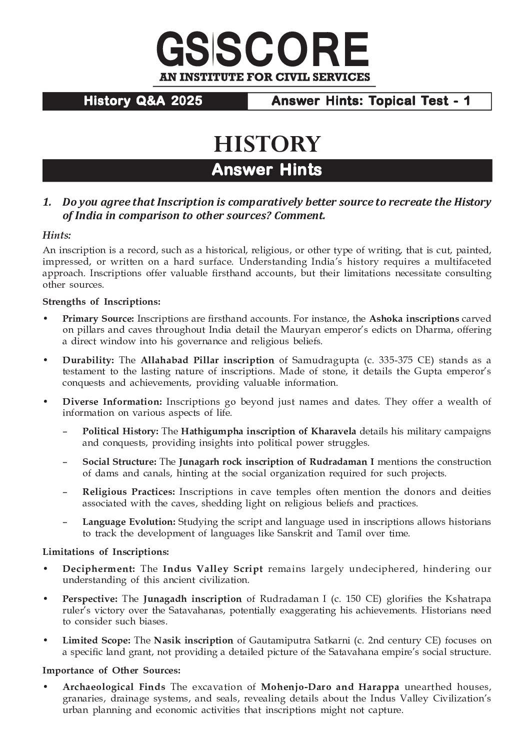 / GS SCORE 2025 MODEL ANSWERS HISTORY (TOPICAL) TEST-1TO10 MODEL ANSWER 2025 FINAL (ENGLISH) {BLACK AND WHITE}