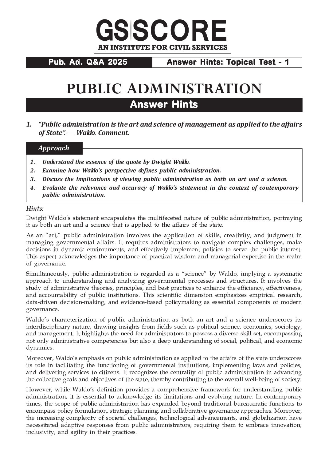 GS SCORE 2025 MODEL ANSWERS PUBLIC ADMINSTRATION (TOPICAL) TEST-1TO5 MODEL ANSWER 2025 FINAL (ENGLISH) {BLACK AND WHITE}