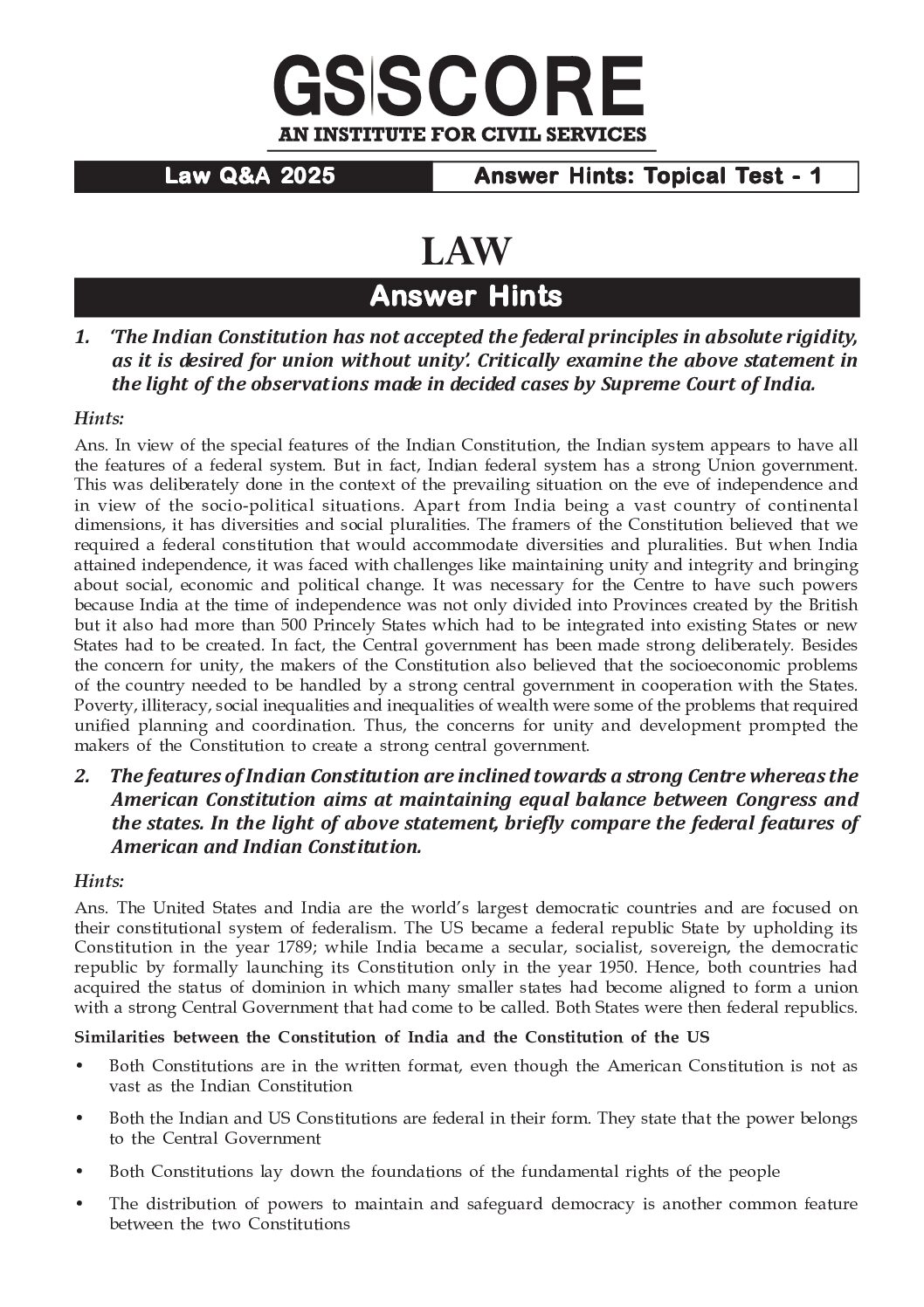 GS SCORE 2025 MODEL ANSWERS LAW (TOPICAL) TEST-1TO5 MODEL ANSWER 2025 FINAL (ENGLISH) {BLACK AND WHITE}