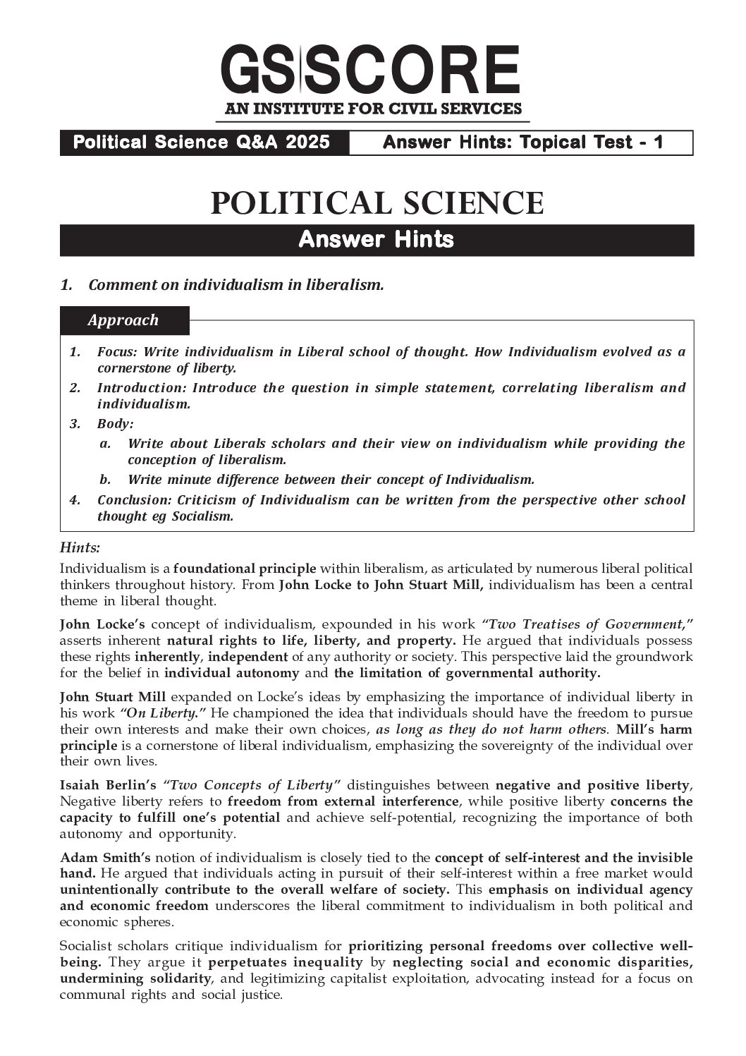 / GS SCORE 2025 MODEL ANSWERS PSIR (TOPICAL) TEST-1TO5 MODEL ANSWER 2025 FINAL (ENGLISH) {BLACK AND WHITE}