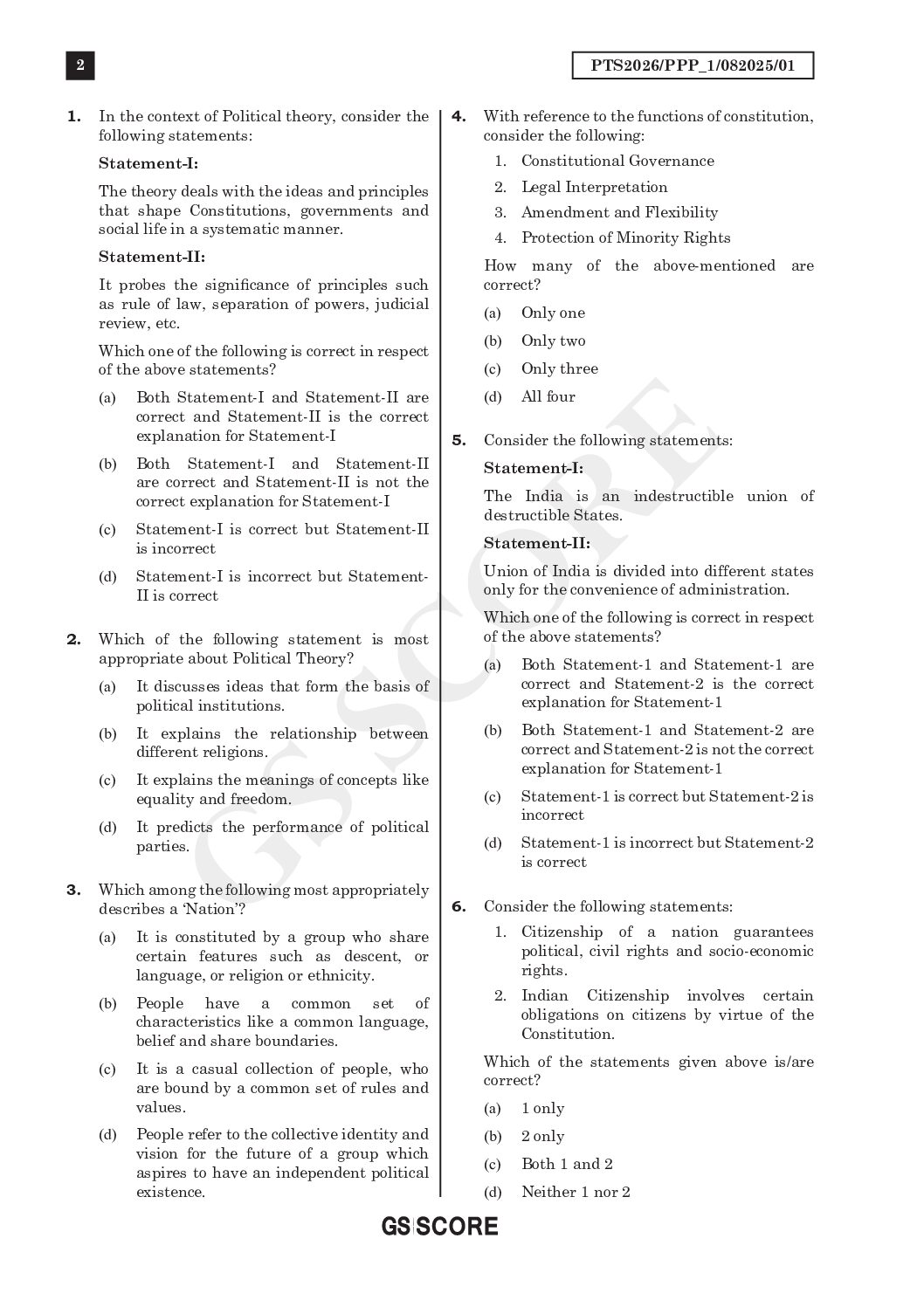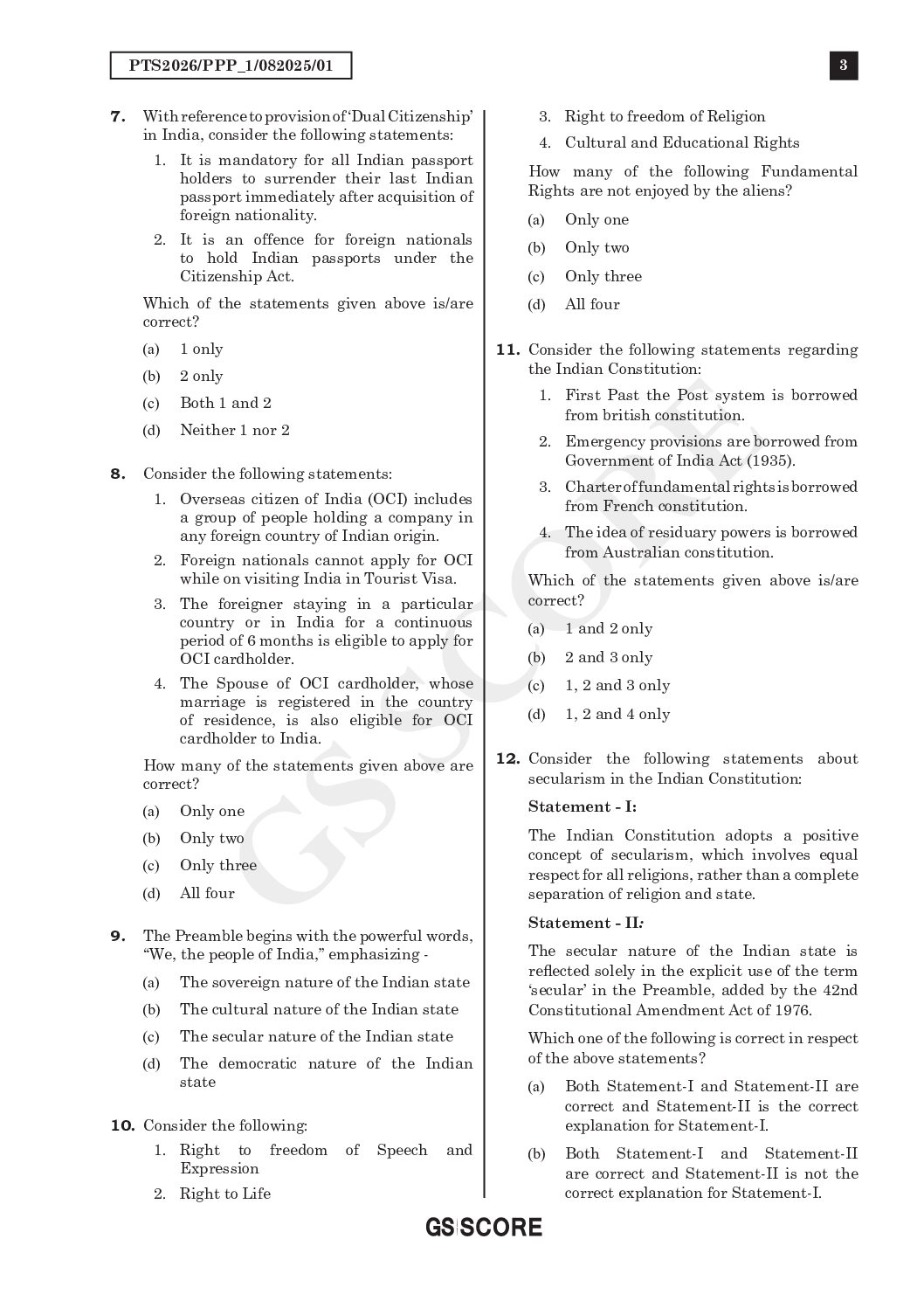 / GS SCORE 2026 TEST-1 (POLITY-1) 2026 FINAL (ENGLISH) {BLACK AND WHITE}
