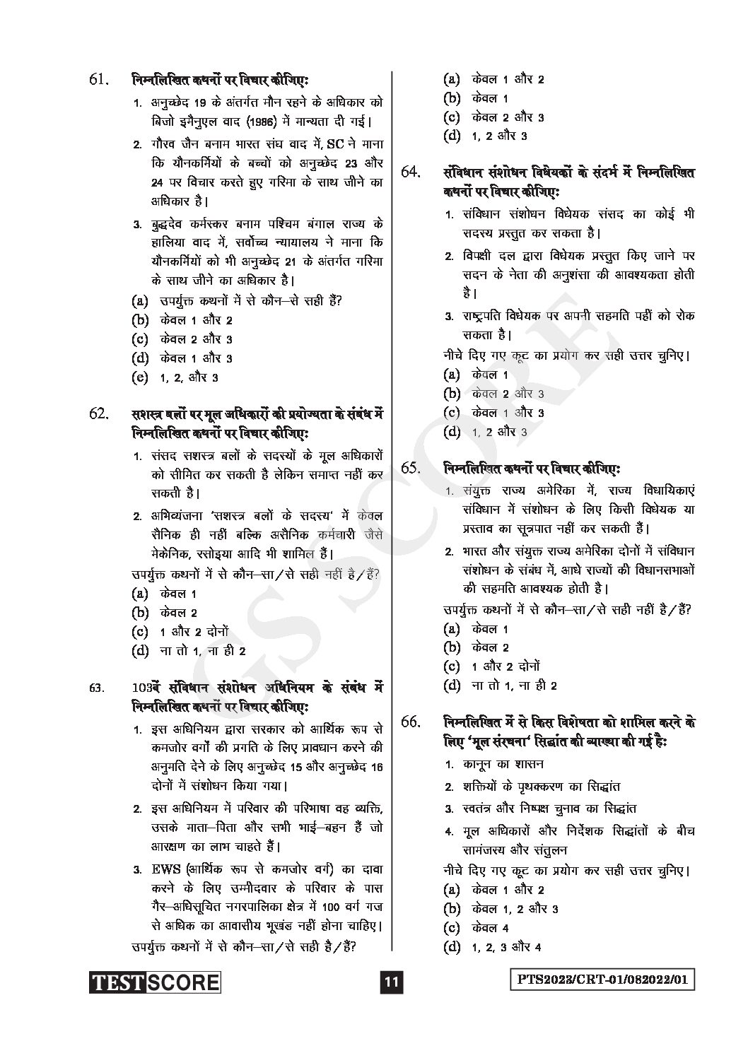 GS SCORE HINDI 2023 TEST-1 WITH SOLUTION FUNDAMENTALS OF POLITY- 1 (COMPLETE REVISION THROUGH TEST )HINDI MEDIUM-(BLACK & WHITE)