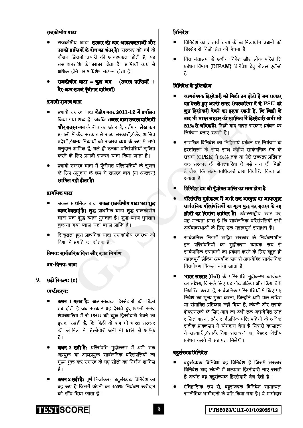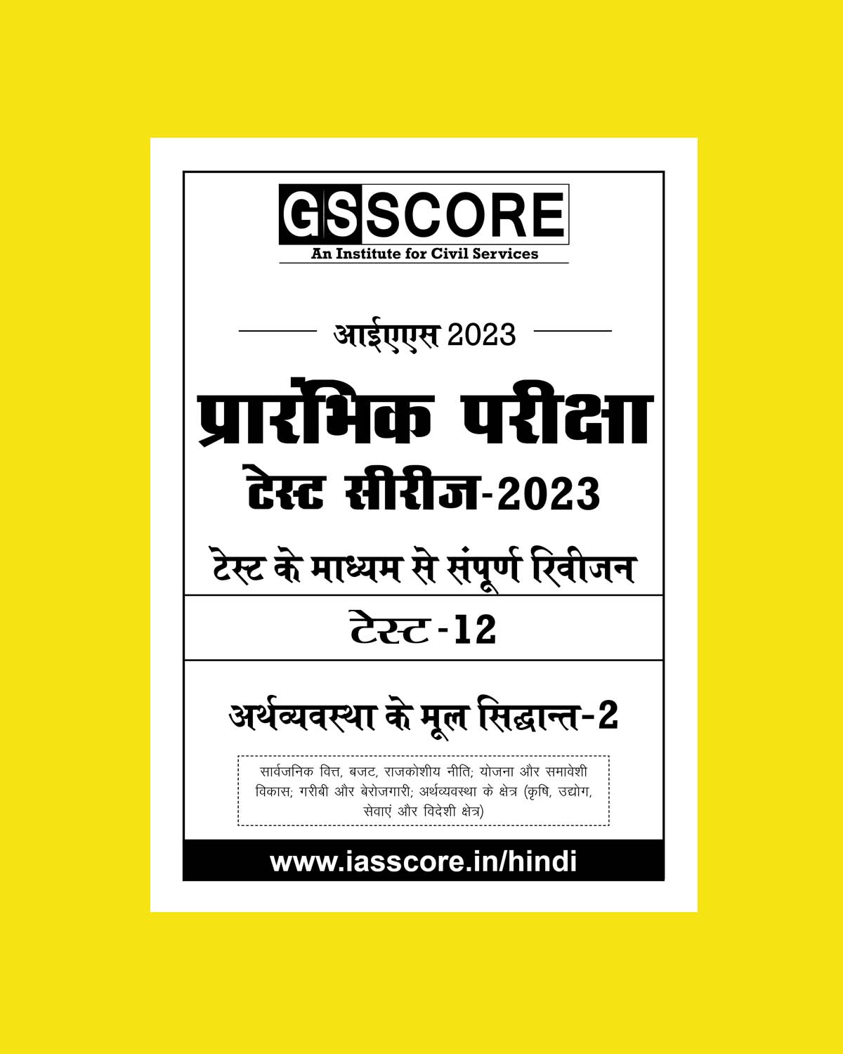 GS SCORE HINDI 2023 TEST-12 WITH SOLUTION –FUNDAMENTALS OF ECONOMY- 2 (COMPLETE REVISION THROUGH TEST) HINDI MEDIUM-(BLACK & WHITE)
