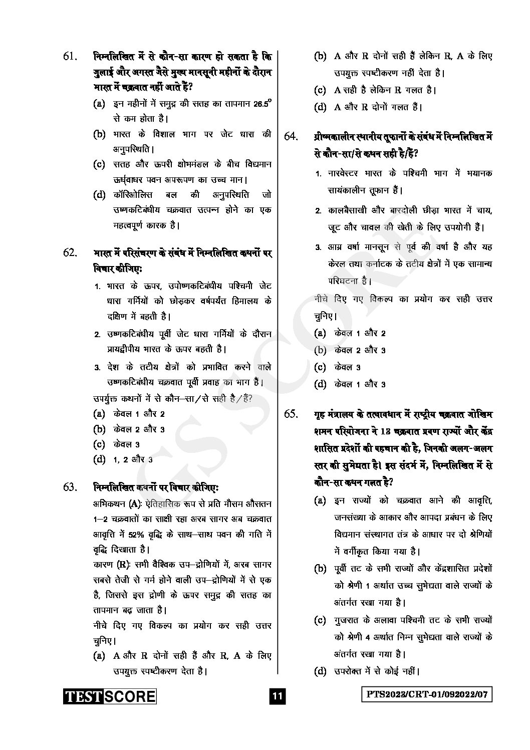 GS SCORE HINDI 2023 TEST-7 WITH SOLUTION FUNDAMENTALS OF GEOGRAPHY- 2 (COMPLETE REVISION THROUGH TEST )HINDI MEDIUM-(BLACK & WHITE)