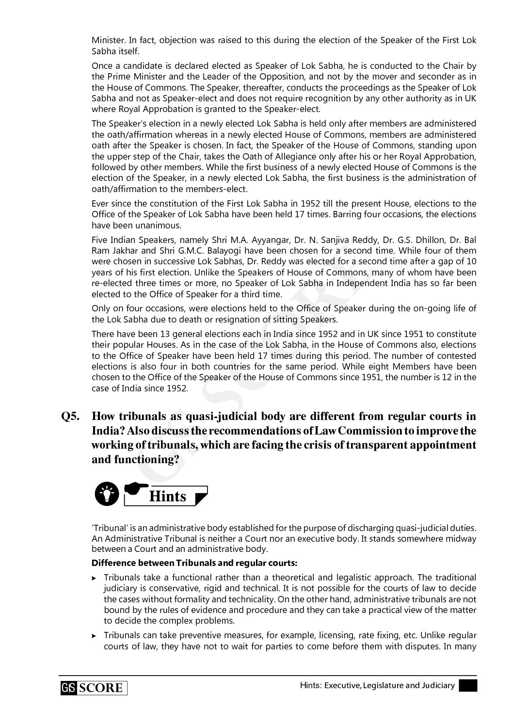 GS SCORE IAS – 2018 – MAINS – TEST – ( 13 + 17 ) – EXECUTIVE, LEGISLATURE AND JUDICIARY (BLACK & WHITE)
