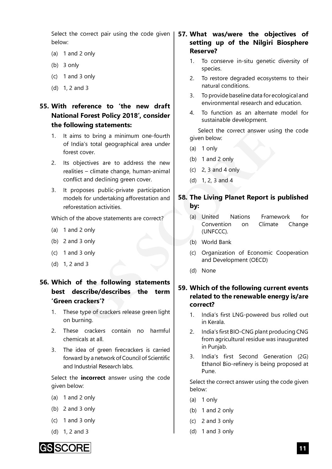 / GS SCORE IAS 2019 PRELIMS TEST SERIES TEST- 23 ECOLOGY AND ENVIRONMENT