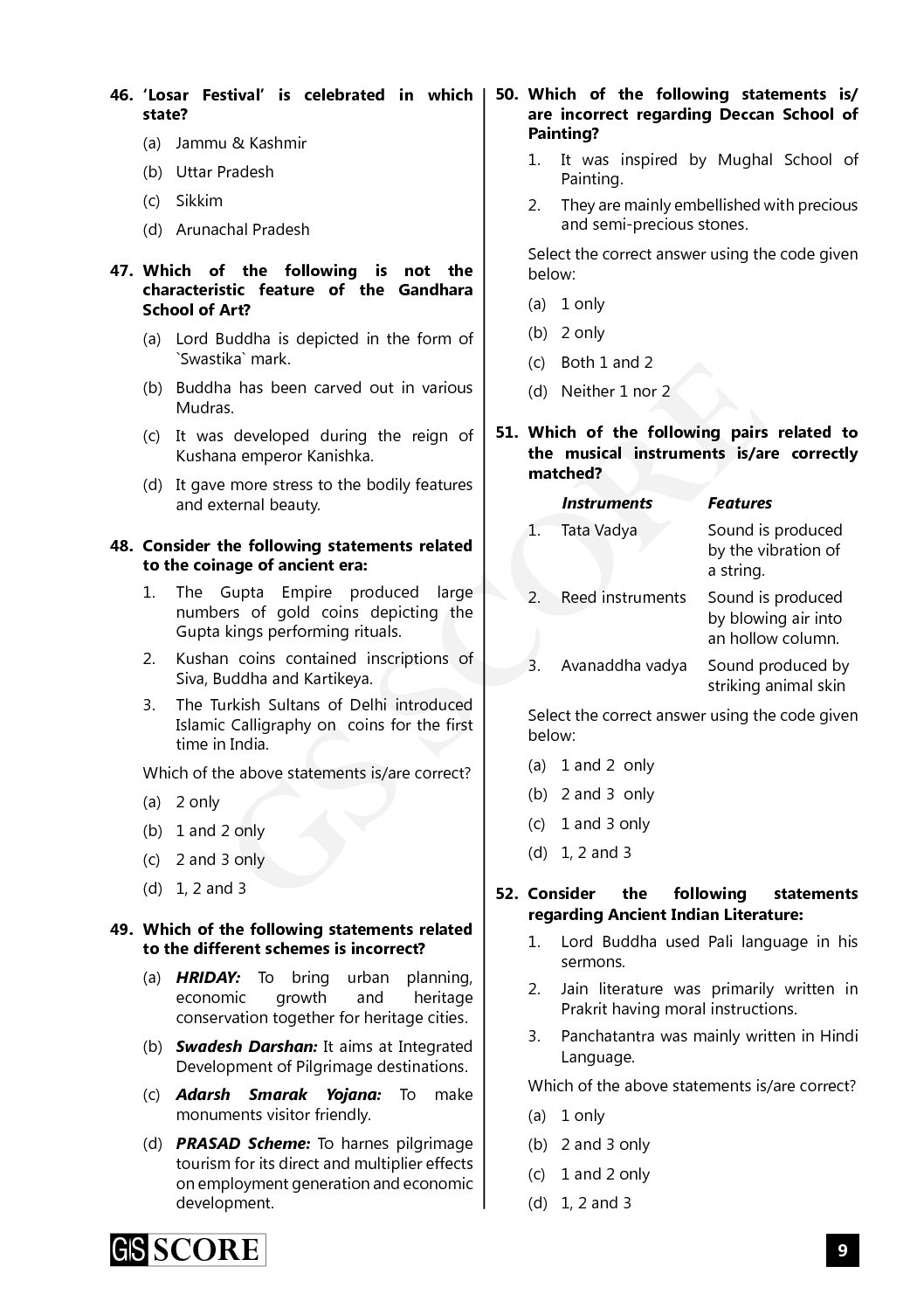 / GS SCORE IAS 2019 PRELIMS TEST SERIES TEST- 5 INDIAN CULTURE