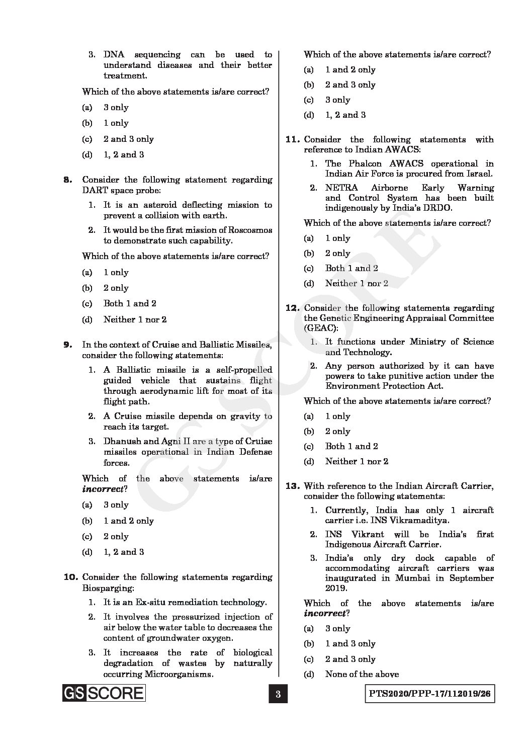 GS SCORE- IAS-2020-PRELIMS- TEST SERIES- TEST- 17 - SCIENCE& TECHNOLOGY- 2 ( BIOTECHNOLOGY + HEALTH + DEFENSE+ SPACE ) quantity