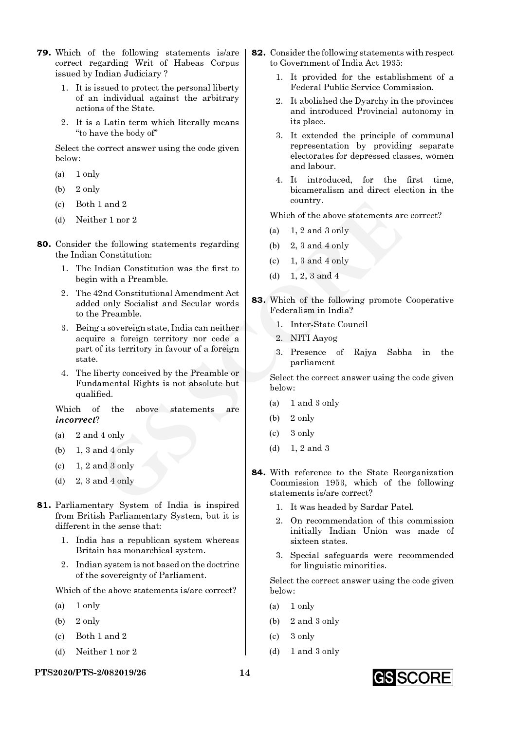 GS SCORE- IAS-2020-PRELIMS- TEST SERIES- TEST-2 POLITY - 2 quantity