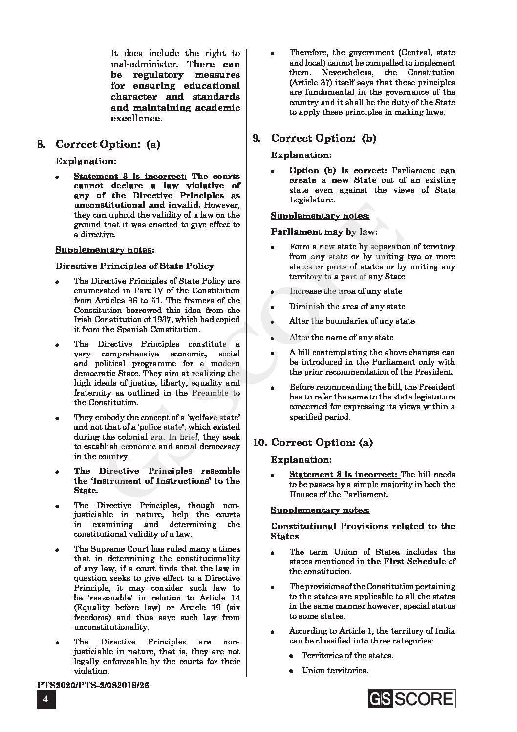 GS SCORE- IAS-2020-PRELIMS- TEST SERIES- TEST-2 POLITY – 2