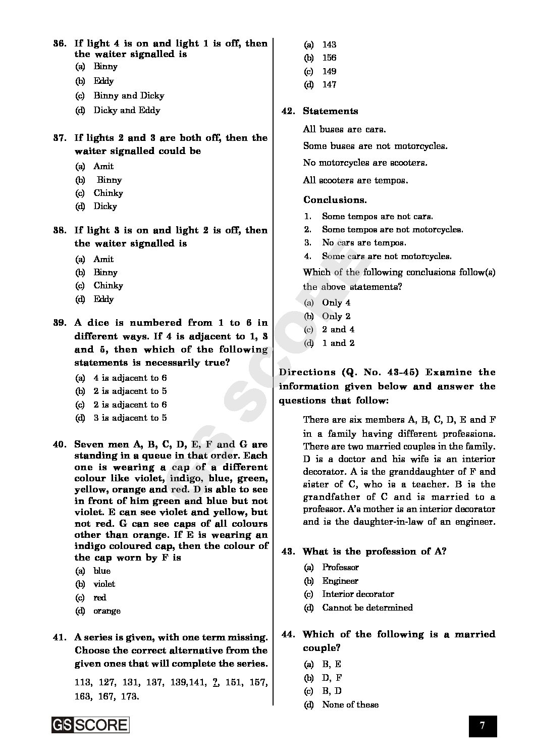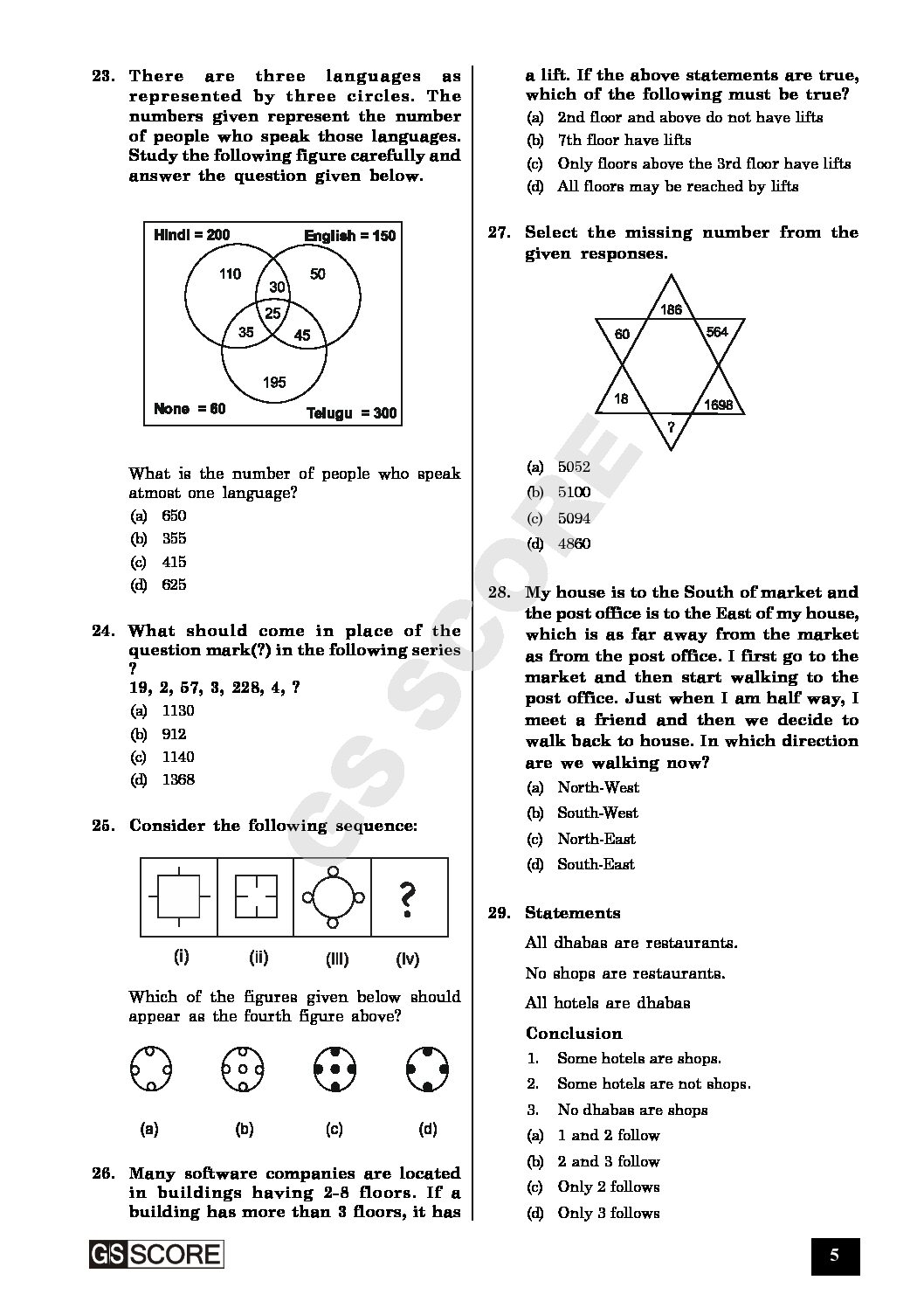GS SCORE- IAS-2020-PRELIMS- TEST SERIES- TEST-24 - CSAT - 1 REASONING quantity