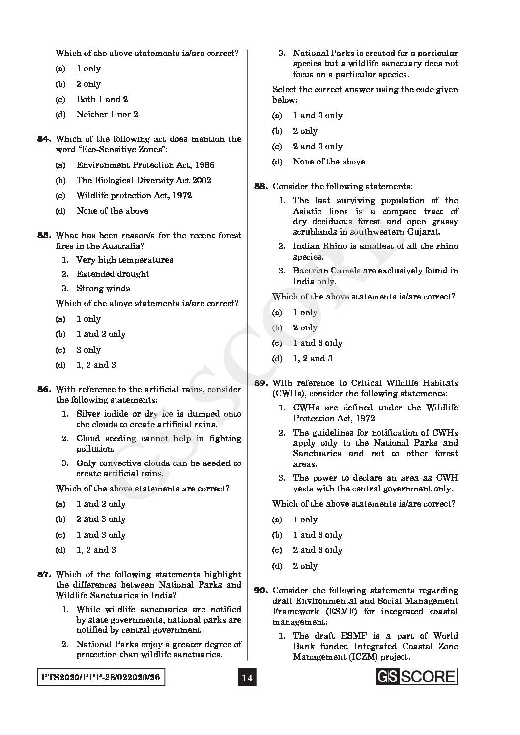 / GS SCORE- IAS-2020-PRELIMS- TEST SERIES- TEST- 28 SECTIONAL TEST -3 ENVIRONMENT