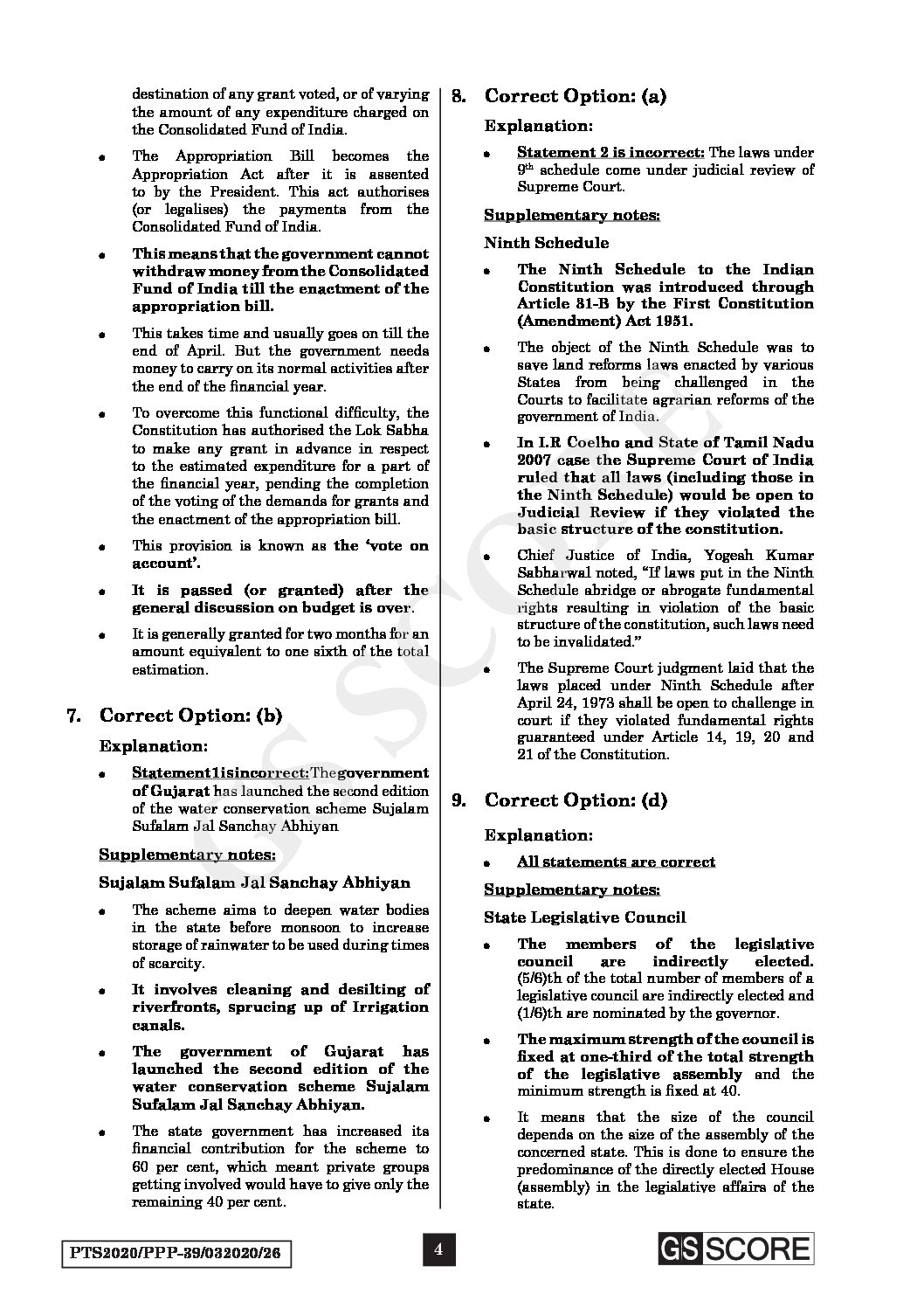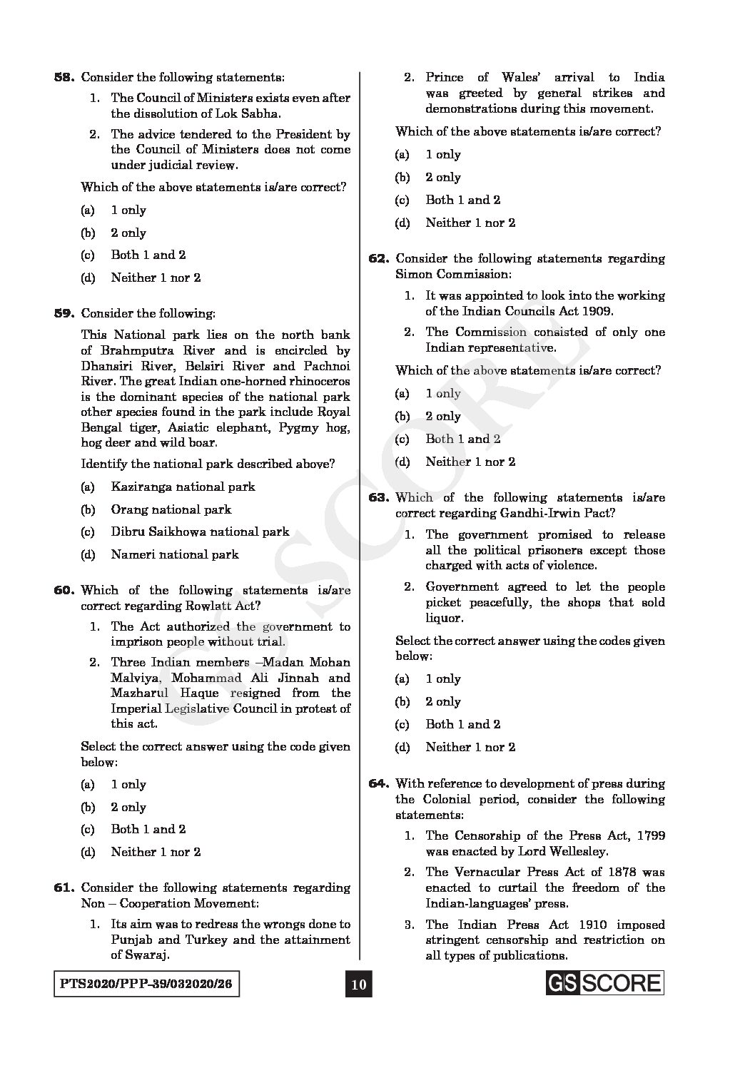 GS SCORE- IAS-2020-PRELIMS- TEST SERIES – TEST-39 – MOCK – 7 PAPER – I