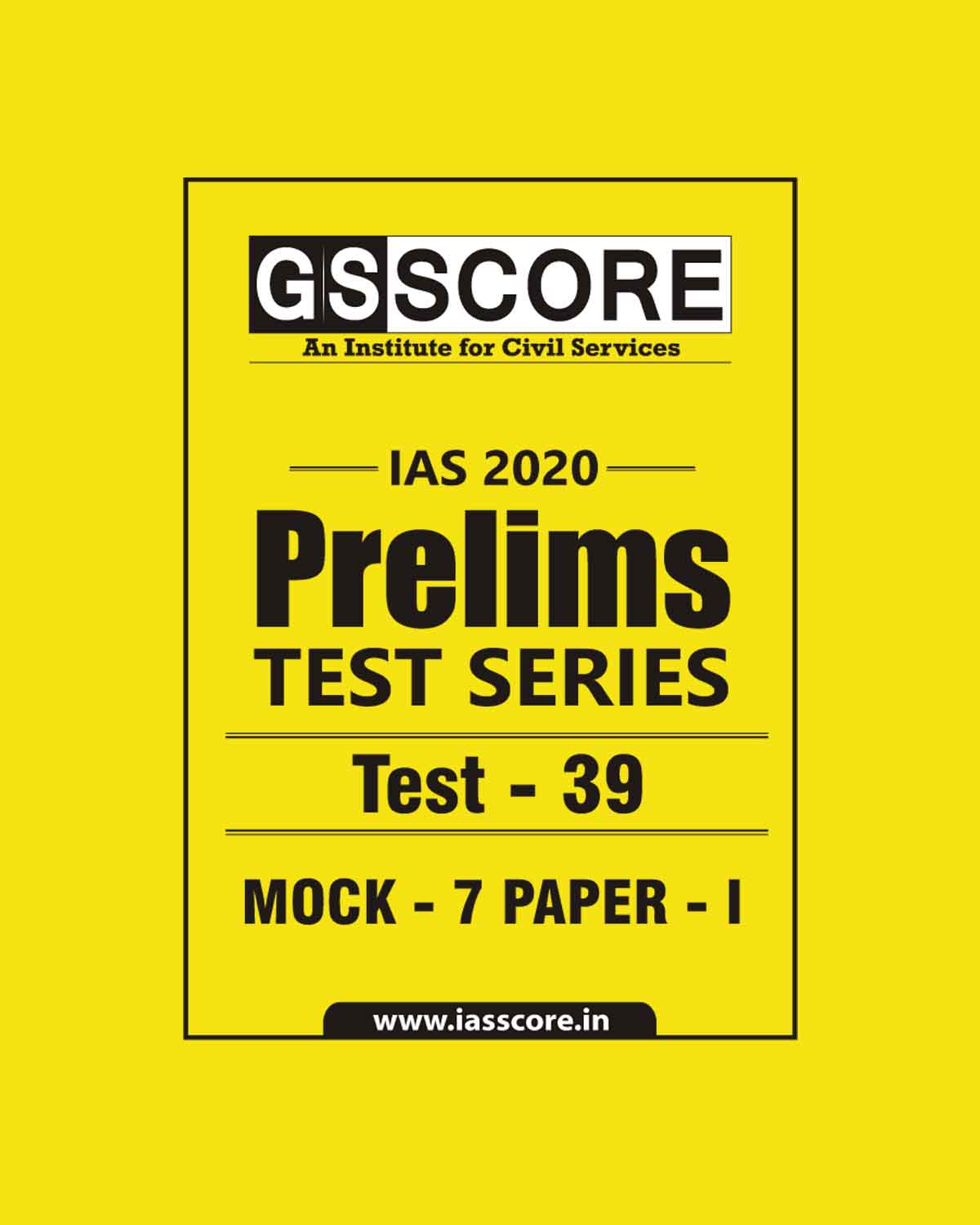 / GS SCORE- IAS-2020-PRELIMS- TEST SERIES – TEST-39 – MOCK – 7 PAPER – I