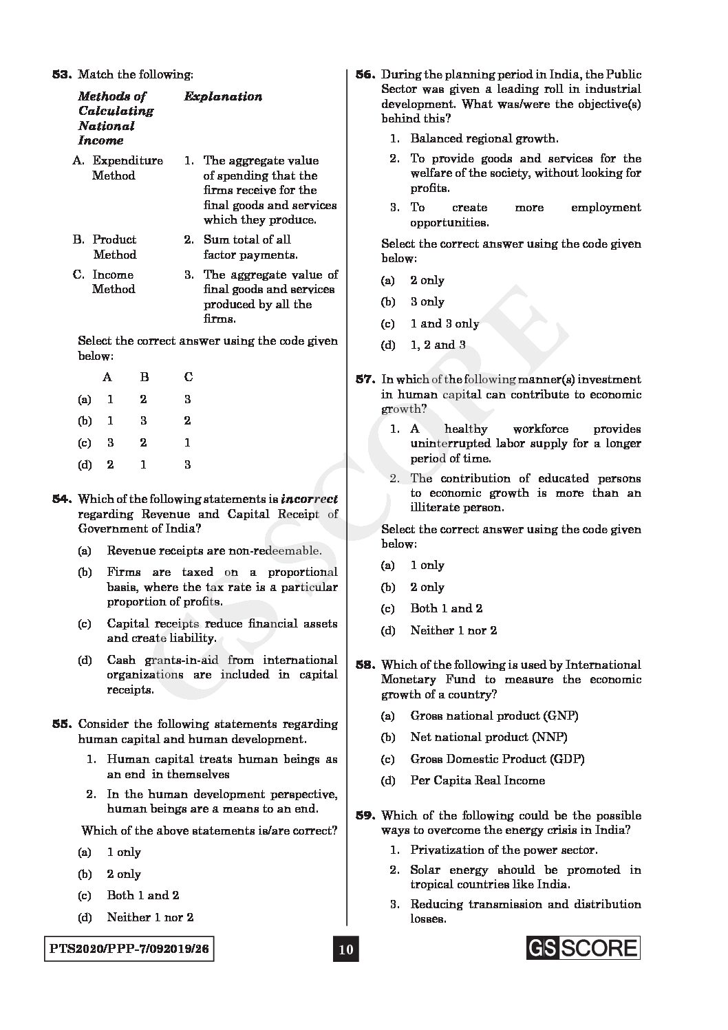 / GS SCORE- IAS-2020-PRELIMS- TEST SERIES- TEST- 7 ( FUNDAMENTALS OF ECONOMY – NCERT)