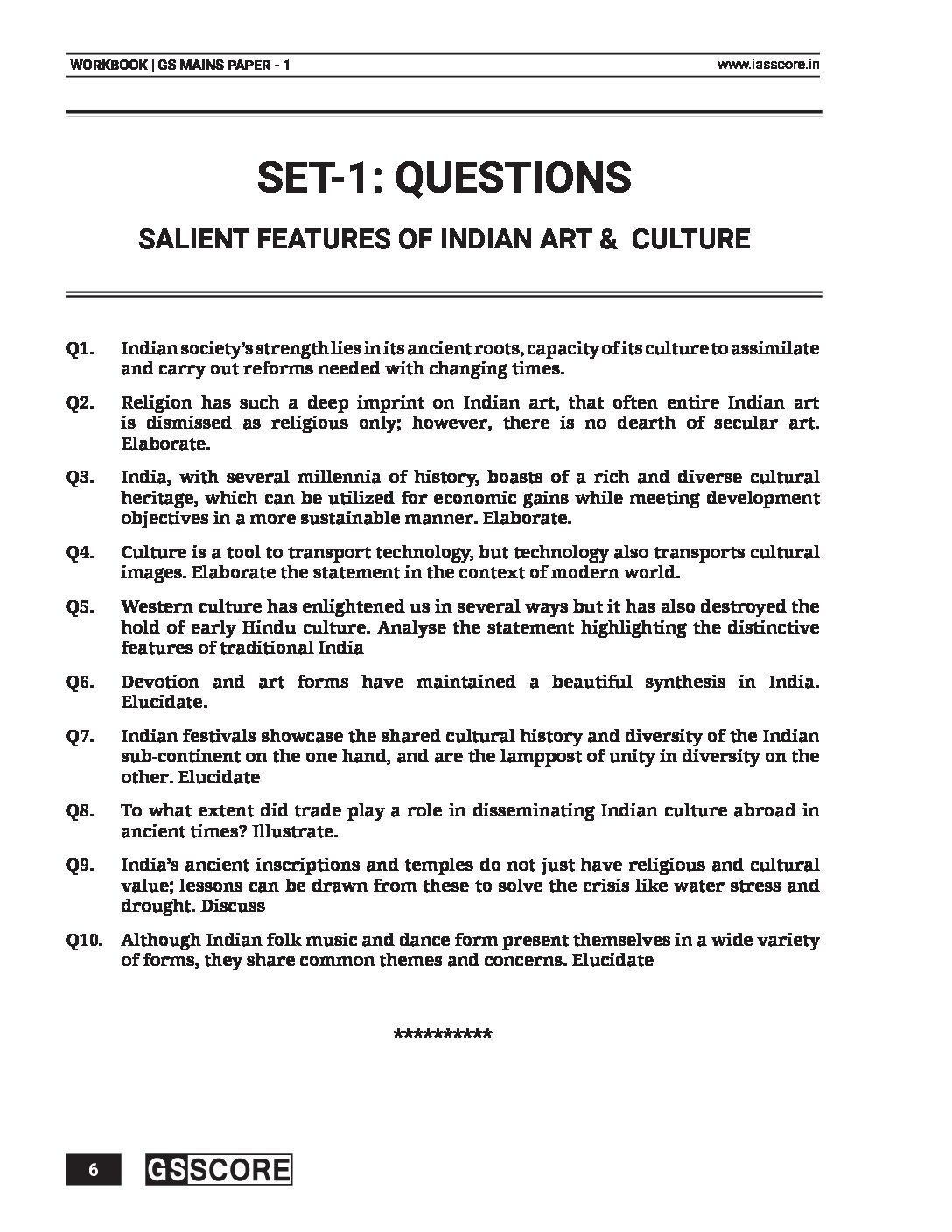 / GS SCORE MAINS ANSWER WRITING WORKBOOK 2023 ART & CULTURE (GS PAPER-01) ENGLISH MEDIUM 2023 (BLACK & WHITE)