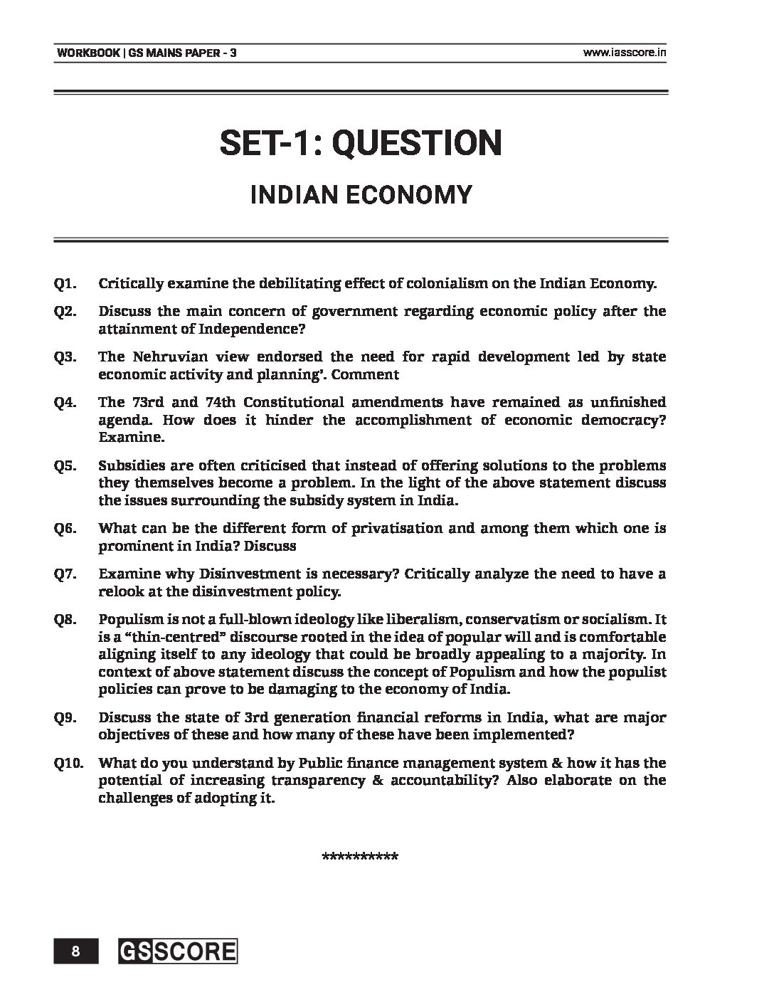 / GS SCORE MAINS ANSWER WRITING WORKBOOK 2023 ECONOMY (GS PAPER-03) ENGLISH MEDIUM 2023 (BLACK & WHITE)