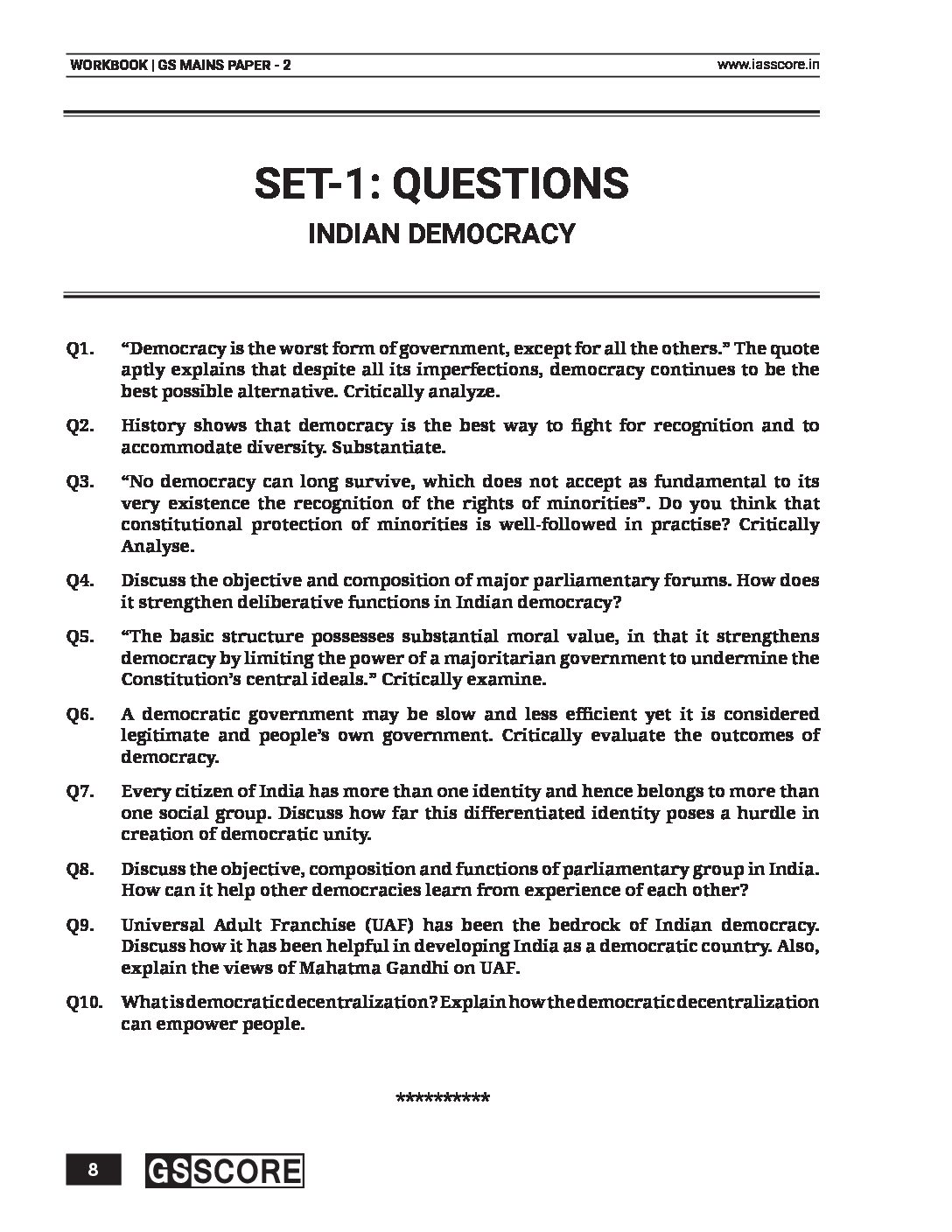 / GS SCORE MAINS ANSWER WRITING WORKBOOK 2023 INDIAN POLITY (GS PAPER-02) ENGLISH MEDIUM 2023 (BLACK & WHITE)