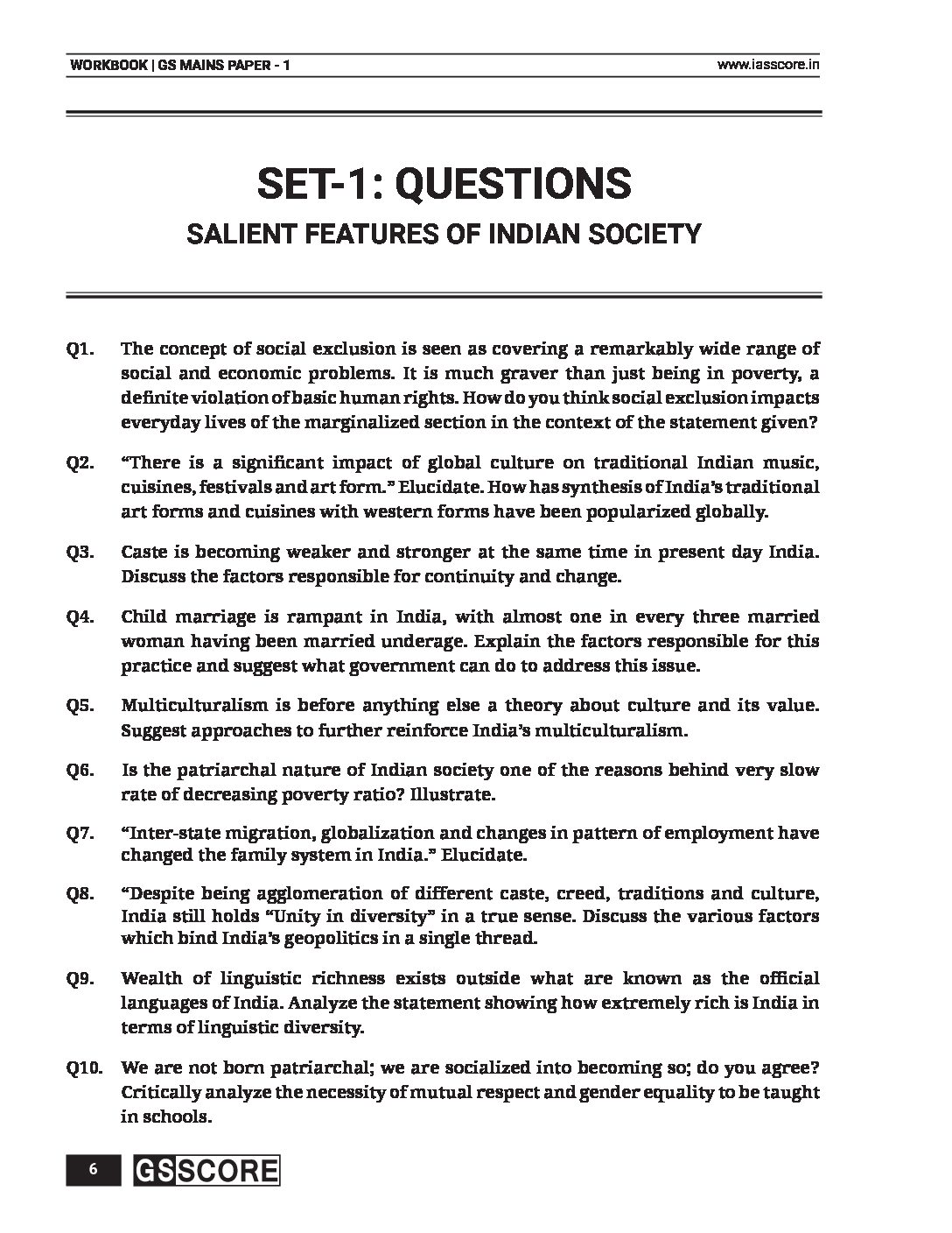 / GS SCORE MAINS ANSWER WRITING WORKBOOK 2023 INDIAN SOCIETY (GS PAPER-01) ENGLISH MEDIUM 2023 (BLACK & WHITE)