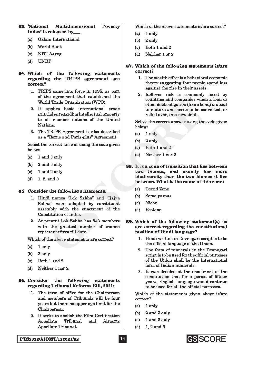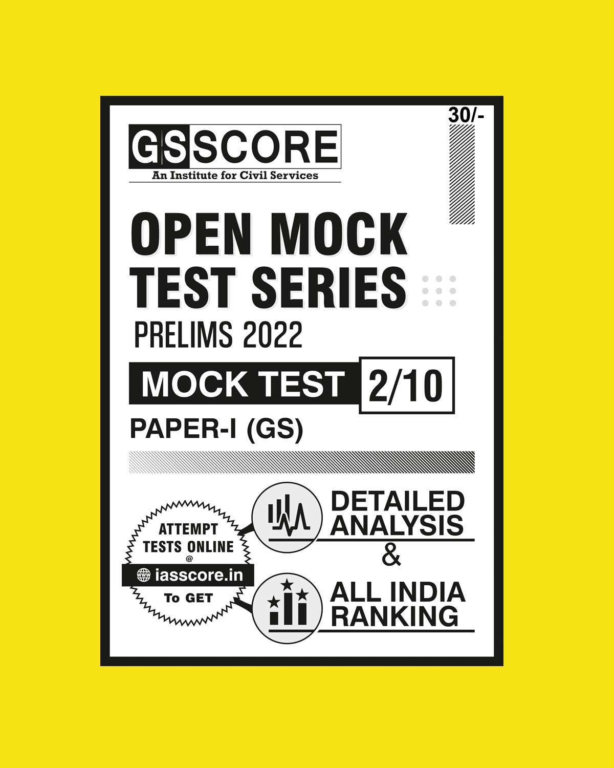 / GS SCORE OPEN MOCK TEST SERIES PRELIMS 2022 MOCK TEST-2 PAPER-1 (GS) MOCK 2022 (BLACK & WHITE)