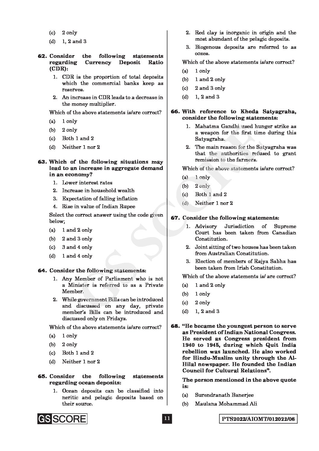 / GS SCORE OPEN MOCK TEST SERIES PRELIMS 2022 MOCK TEST-6 PAPER-1 (GS) MOCK 2022 (BLACK & WHITE)