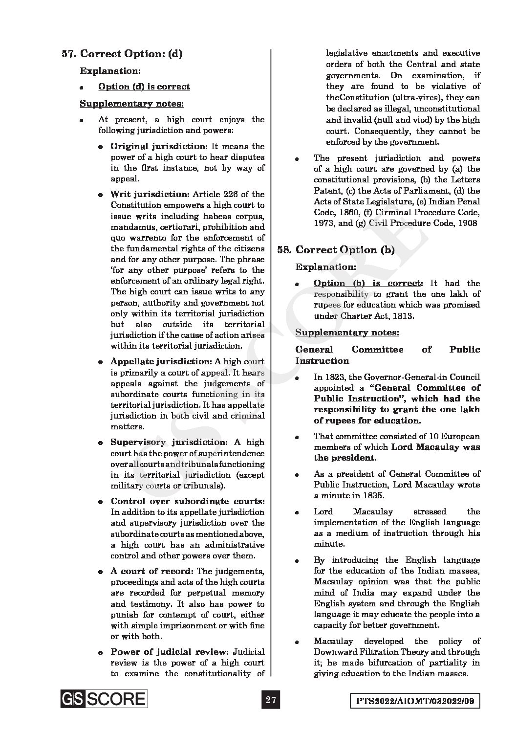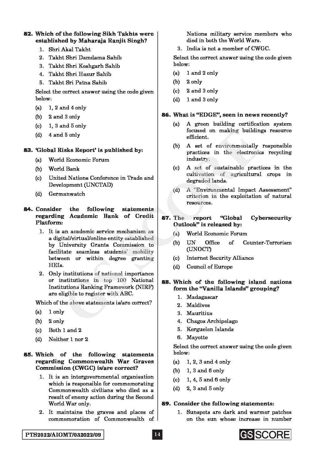 / GS SCORE OPEN MOCK TEST SERIES PRELIMS 2022 MOCK TEST-9 PAPER-1 (GS) MOCK 2022 (BLACK & WHITE)