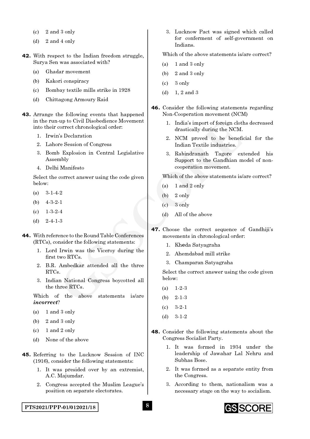 GS SCORE PRE TEST SERIES 2021 TEST-18 HISTORY-2