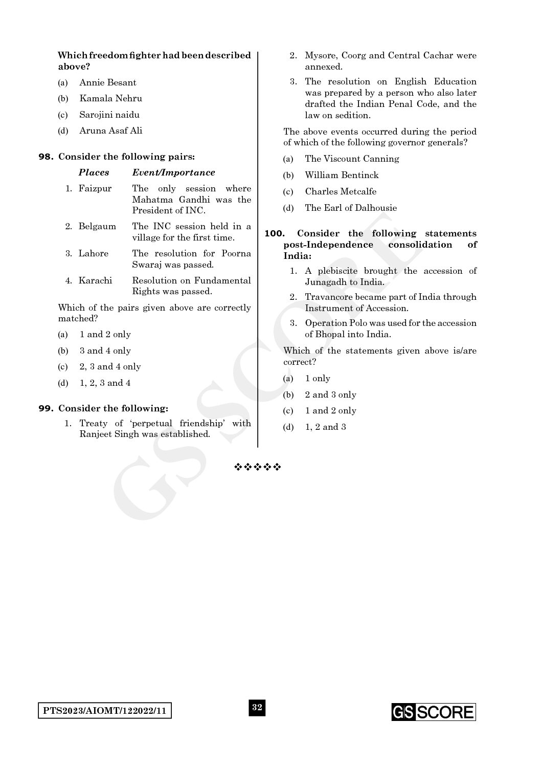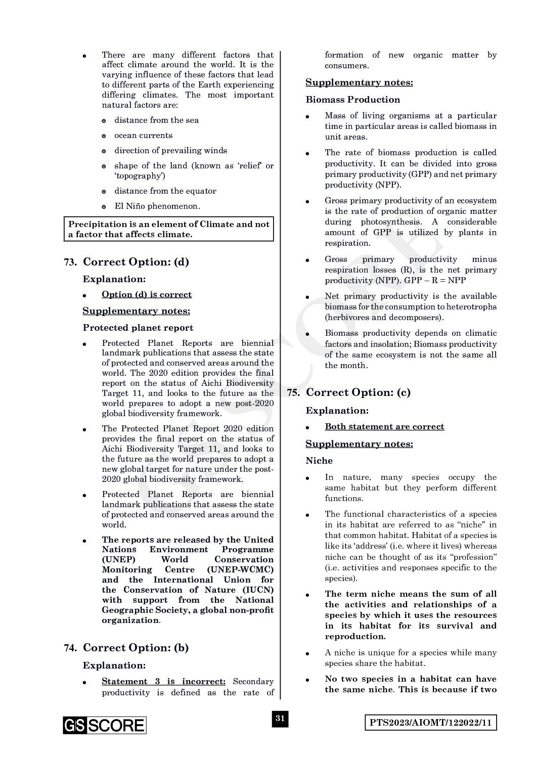 / GS SCORE PRELIMS 2023 ALL INDIA OPEN MOCK TEST-11 (GENERAL STUDIES) TEST SERIES (BLACK & WHITE)